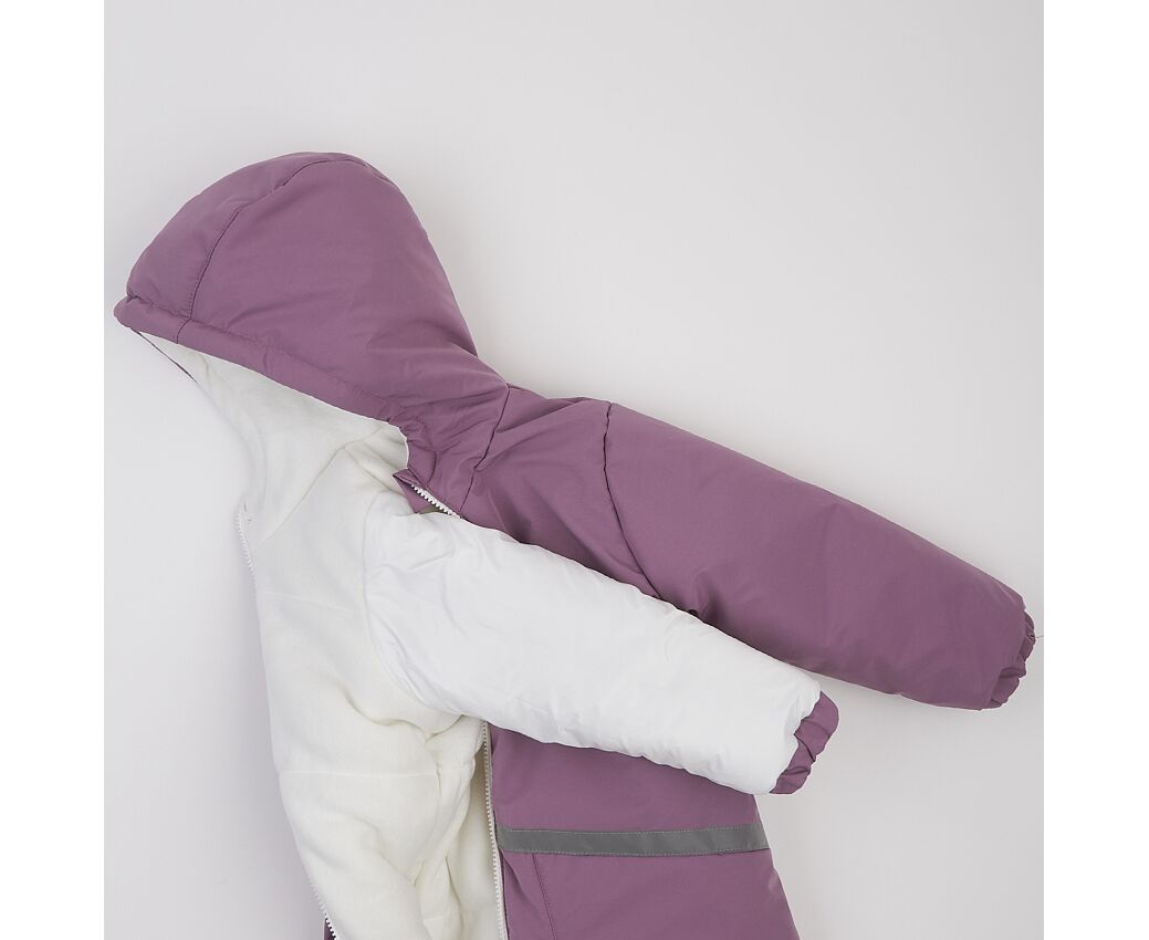 Зимовий дитячий комбінезон від українського виробника "Ляля". Комбінезон з каптуром із щільної вологовідштовхувальної плащовки ,на флісі з утеплювачем синтепух щільністю 250г/кв.м. , який зберігає форму та об'єм, навіть після багаторазового стиснення та забезпечує тепло навіть при сильних морозах. Застібка асиметрична по переду на якісну блискавку, низ ніжок та рукавів на еластичній тасьмі. Деталі переду та спинки оздоблені світловідбивними елементами. Для полегшення надягання на дитину виворіт рукавів з гладкої тканини підкладки.