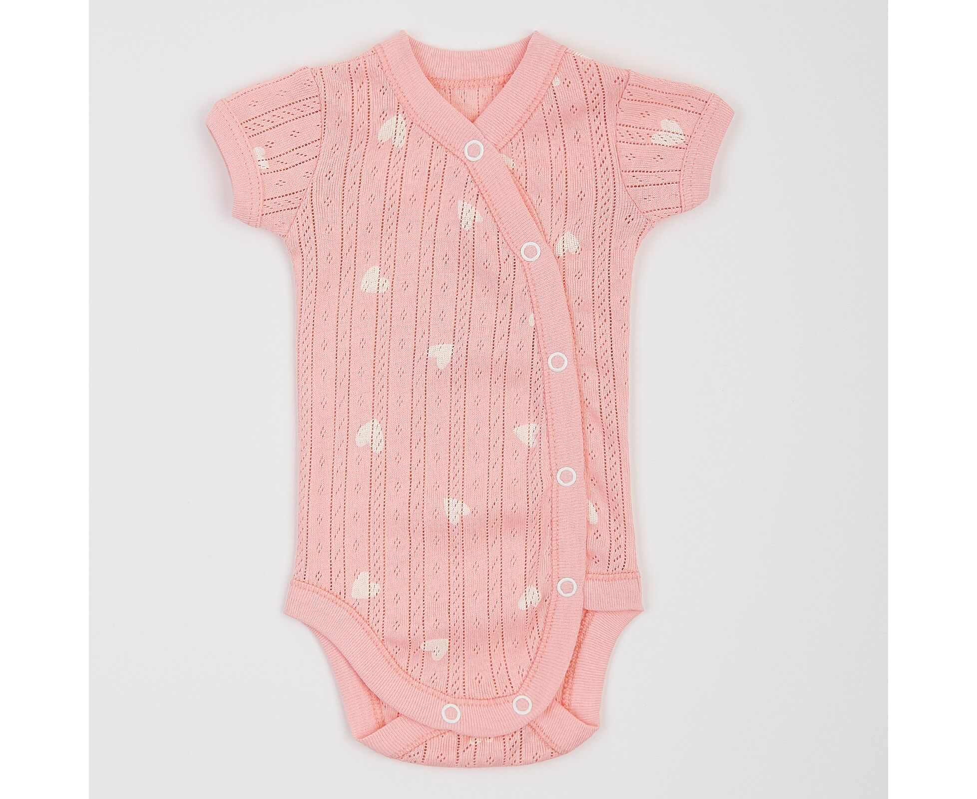 серця на рожево-кораловому 68 (3-6 міс.) для дівчинки корал (персик, лосось) ажур Малыши/Бодики/Бодики футболка 68 513759344