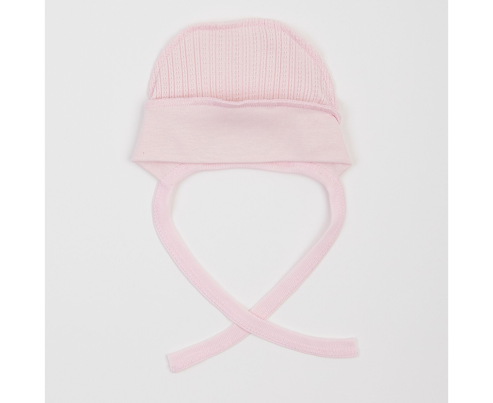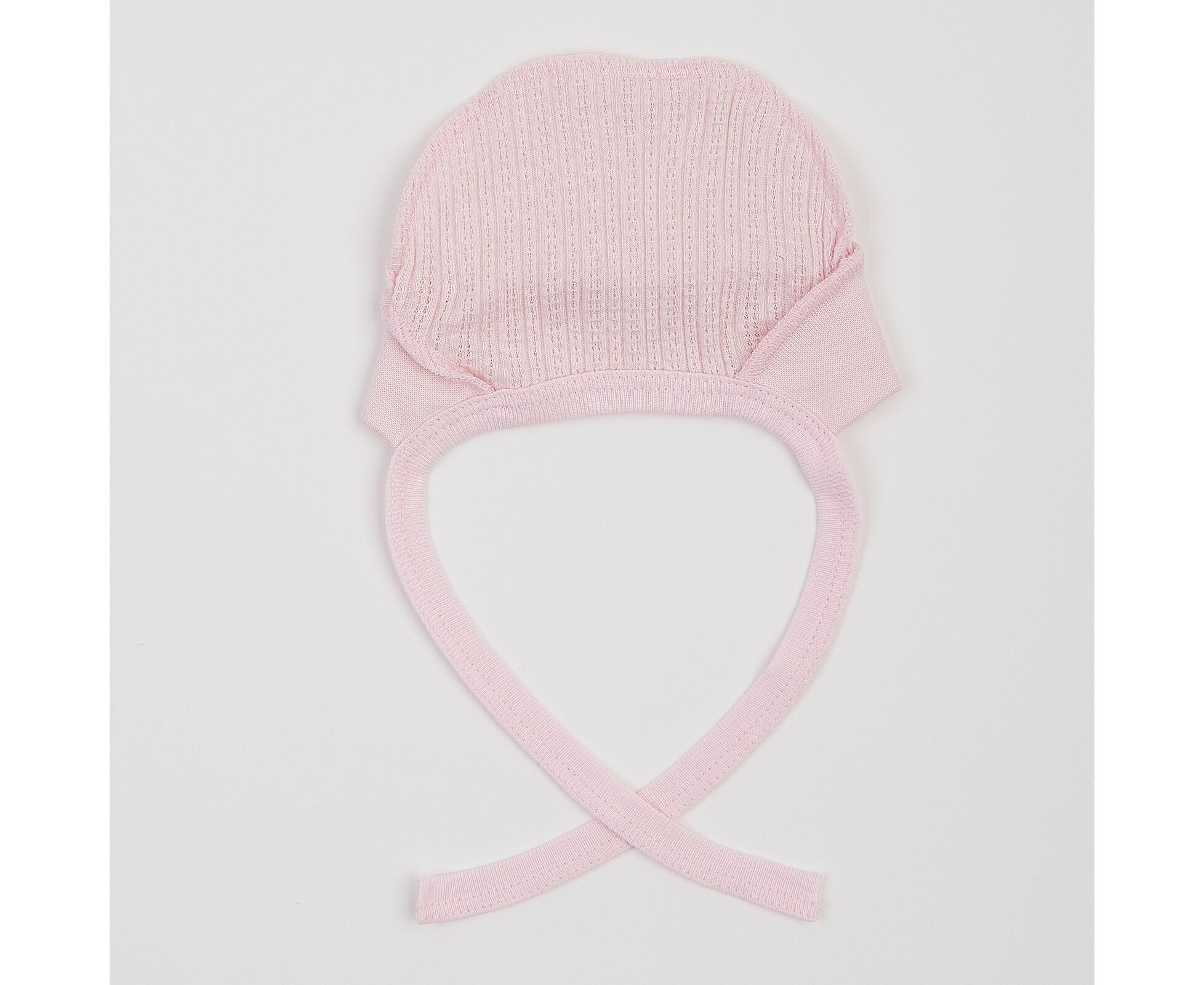 Чепчик для новонародженого, з наздвичайно м'якої, приємної на дотик 100% бавовняної трикотажної тканини - ажур. Передня деталь з еластичного полотна забезпечує ідеальну посадку та щільне прилягання. Шви виробу назовні і не торкаються шкіри дитини, виключаючи будь-який дискомфорт та подразнення.