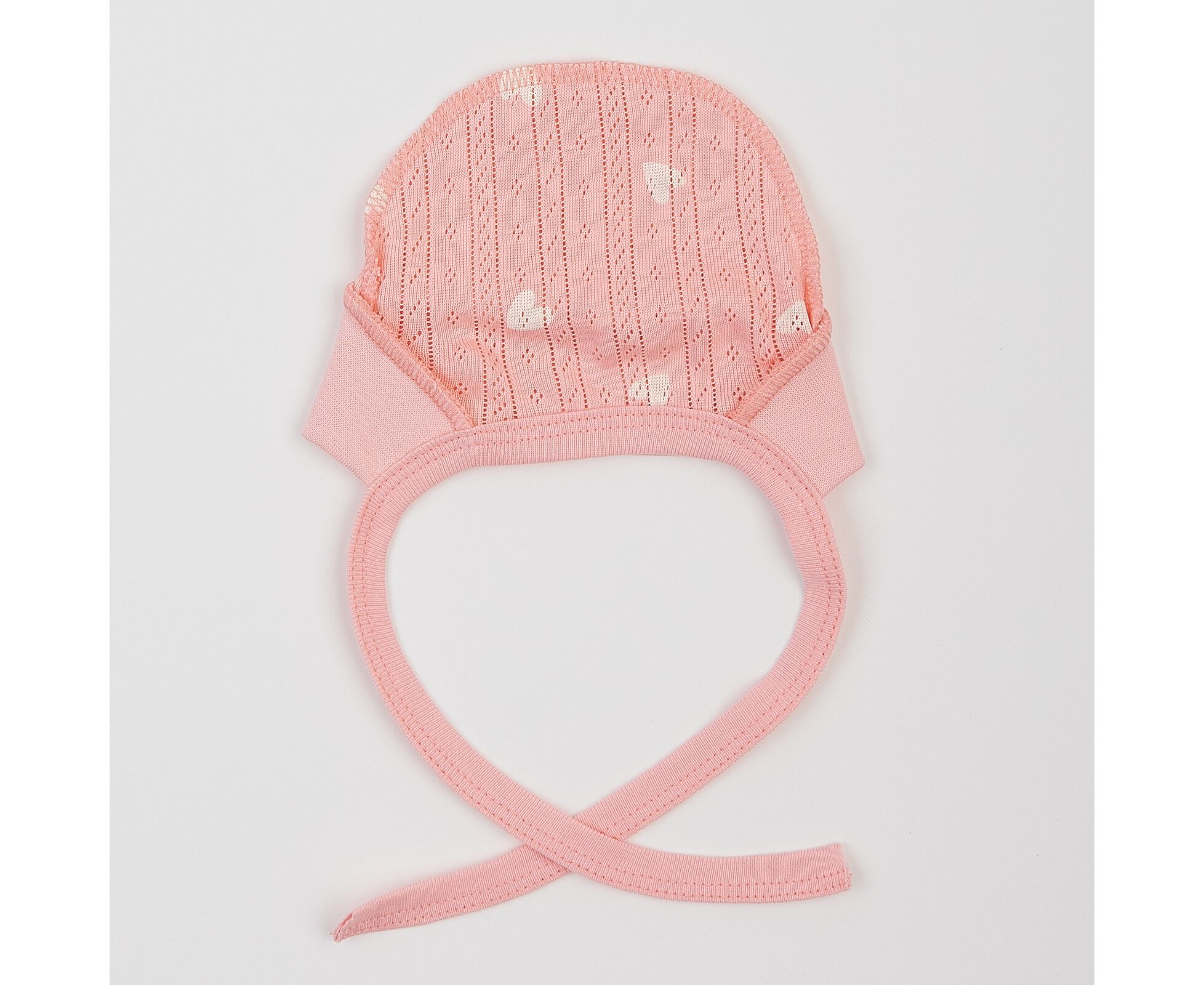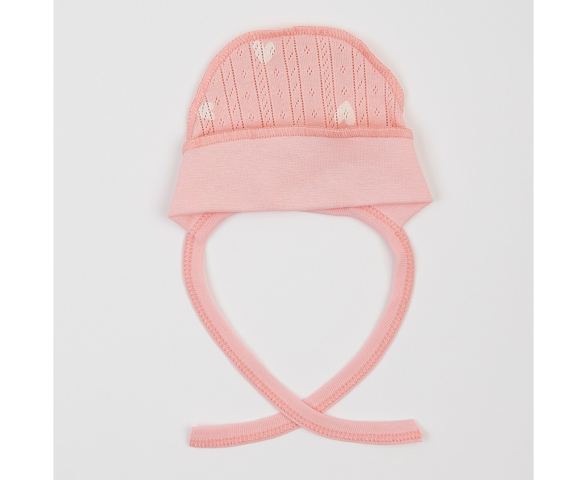Чепчик для новонародженого, з наздвичайно м'якої, приємної на дотик 100% бавовняної трикотажної тканини - ажур. Передня деталь з еластичного полотна забезпечує ідеальну посадку та щільне прилягання. Шви виробу назовні і не торкаються шкіри дитини, виключаючи будь-який дискомфорт та подразнення.