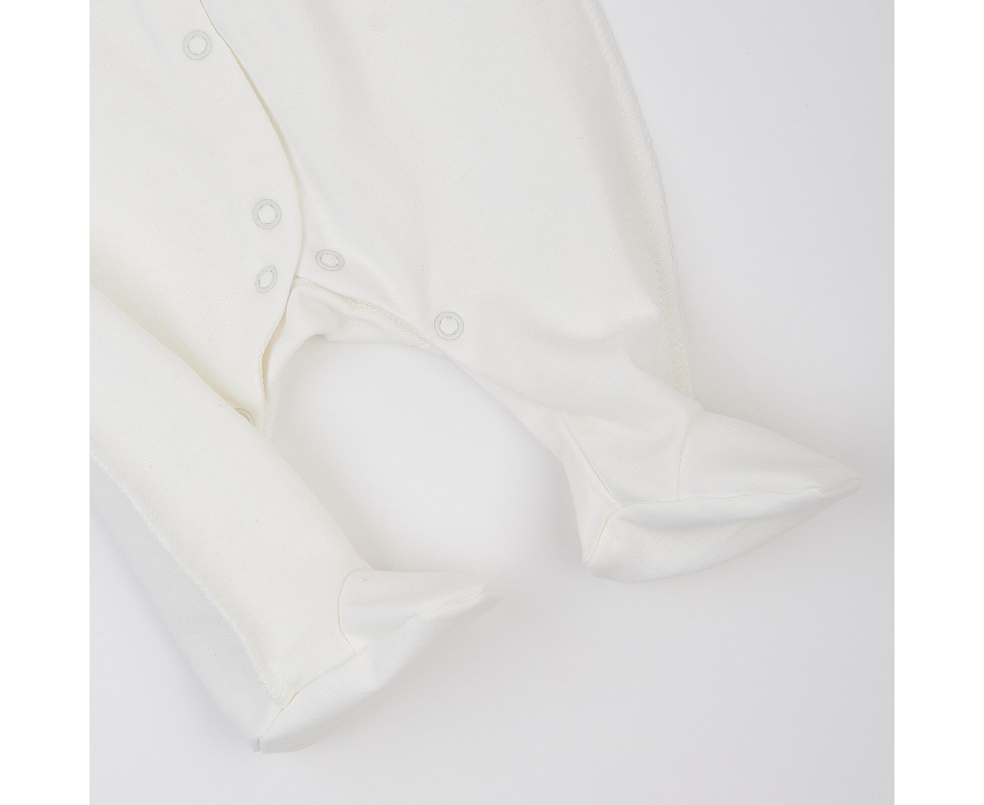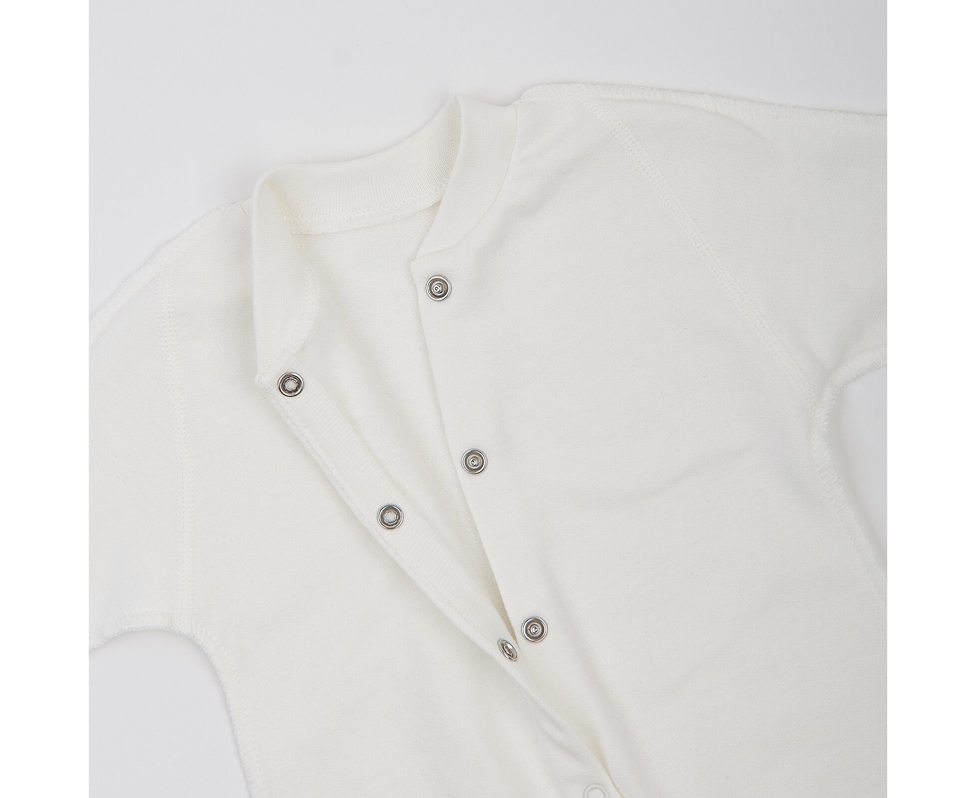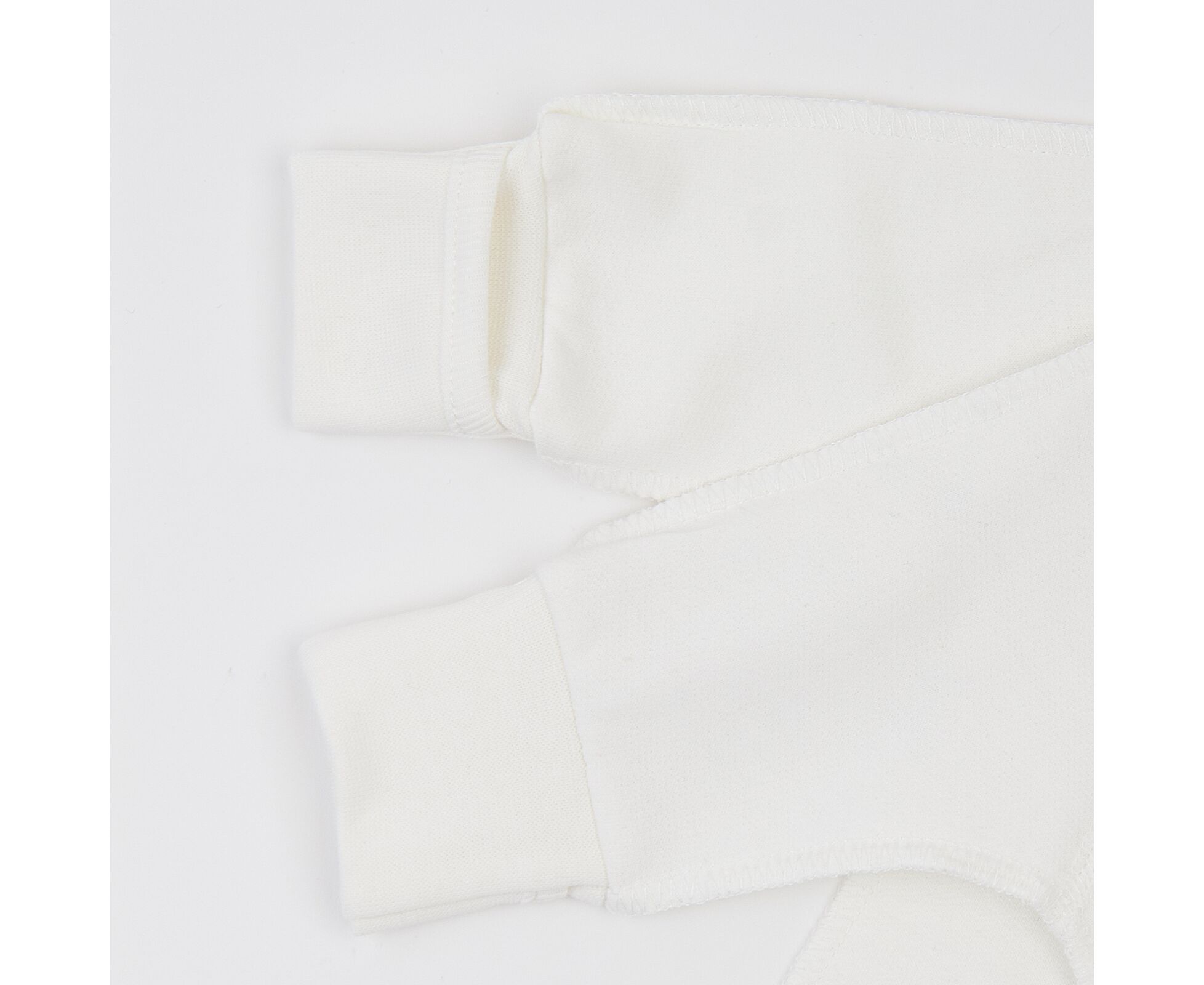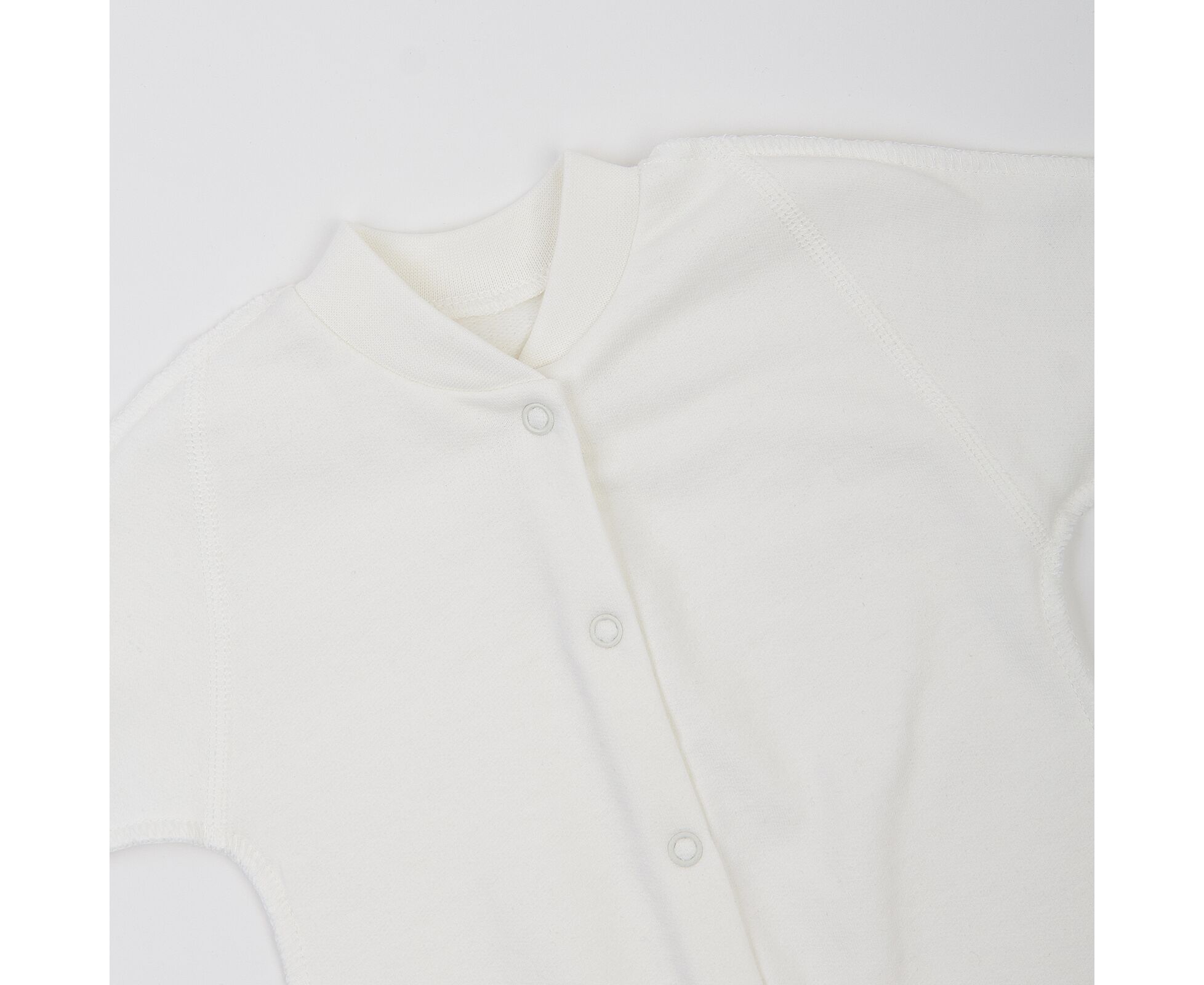 Тепленький чоловічок для новонароджених з м'якенького, приємного на дотик футеру з начосом. Комбінезон з центральною застібкою на кнопки по борту та по ніжкам. Рукав реглан, стійка та манжети з еластичної рібани. Манжети з відворотом, що дозволяє перетворити їх в царапки. Натуральний склад полотна та шви назовні, які не торкаються шкіри малюка, виключають будь-який дискомфорт та подразнення.