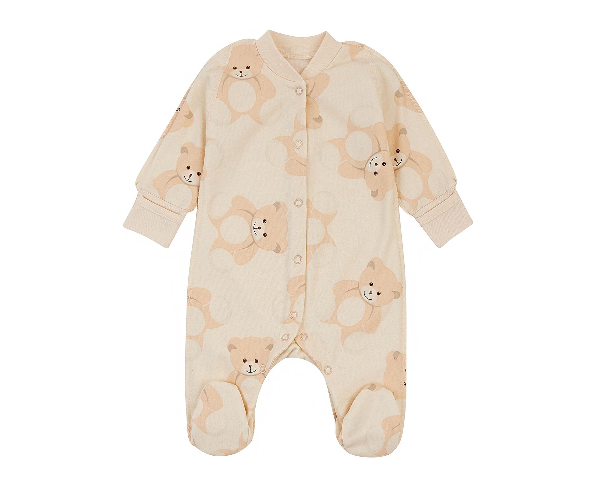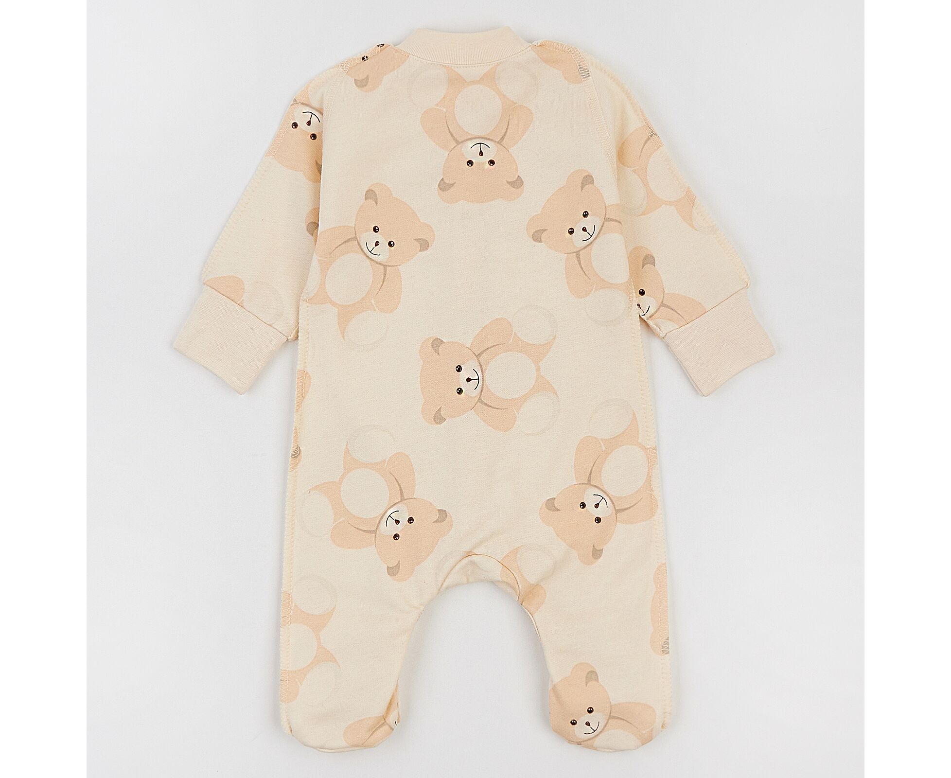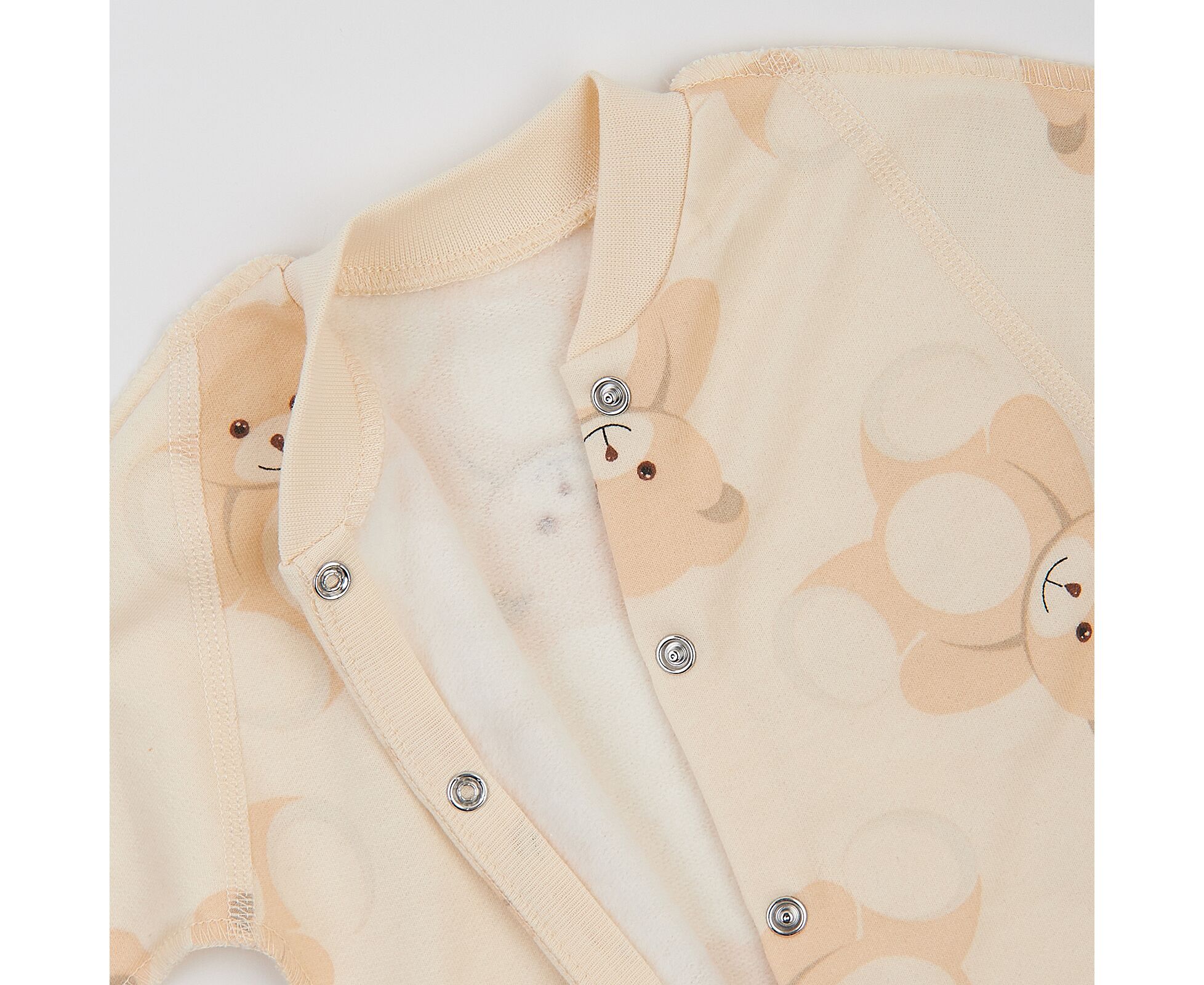 Тепленький чоловічок для новонароджених з м'якенького, приємного на дотик футеру з начосом. Комбінезон з центральною застібкою на кнопки по борту та по ніжкам. Рукав реглан, стійка та манжети з еластичної рібани. Манжети з відворотом, що дозволяє перетворити їх в царапки. Натуральний склад полотна та шви назовні, які не торкаються шкіри малюка, виключають будь-який дискомфорт та подразнення.