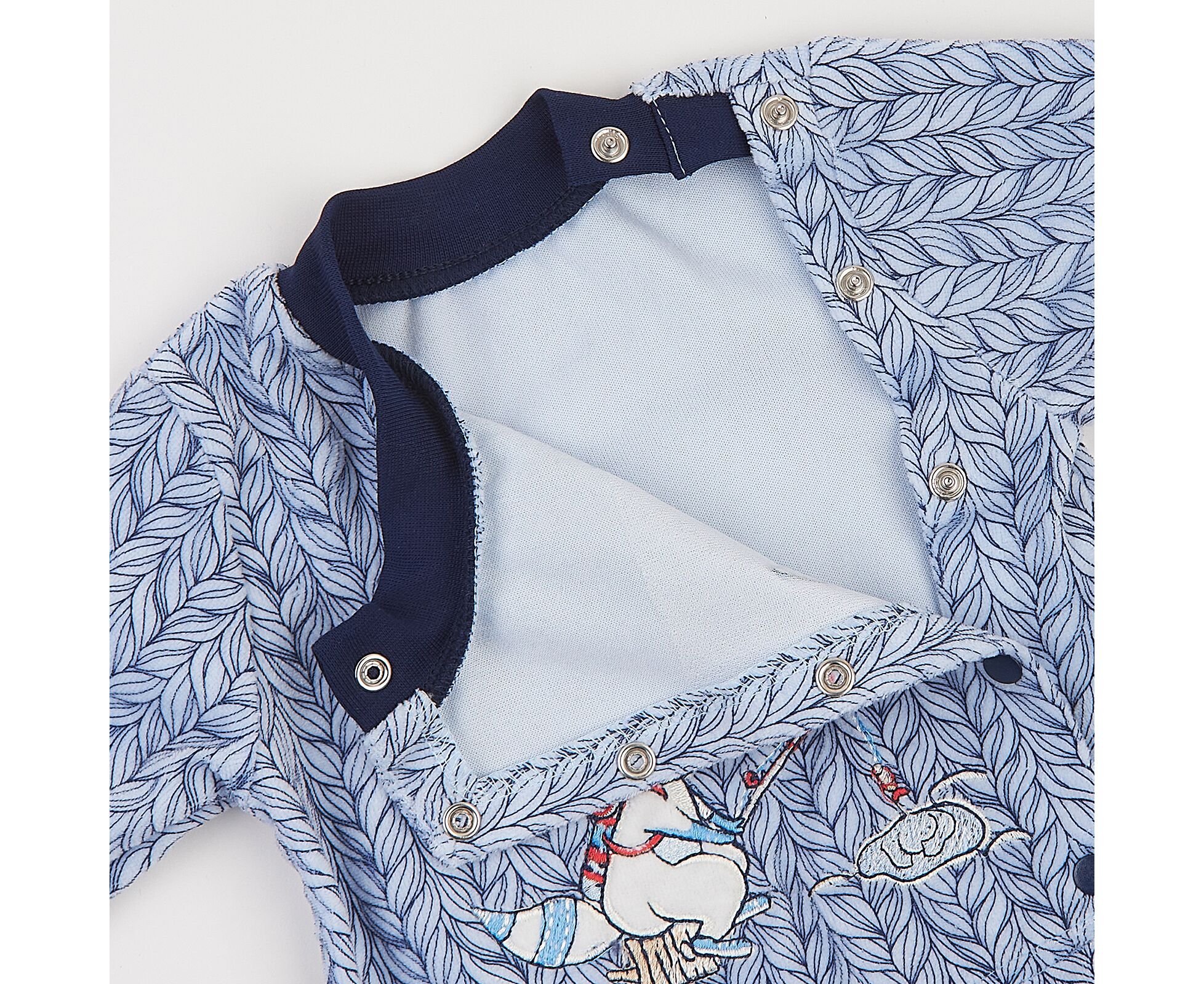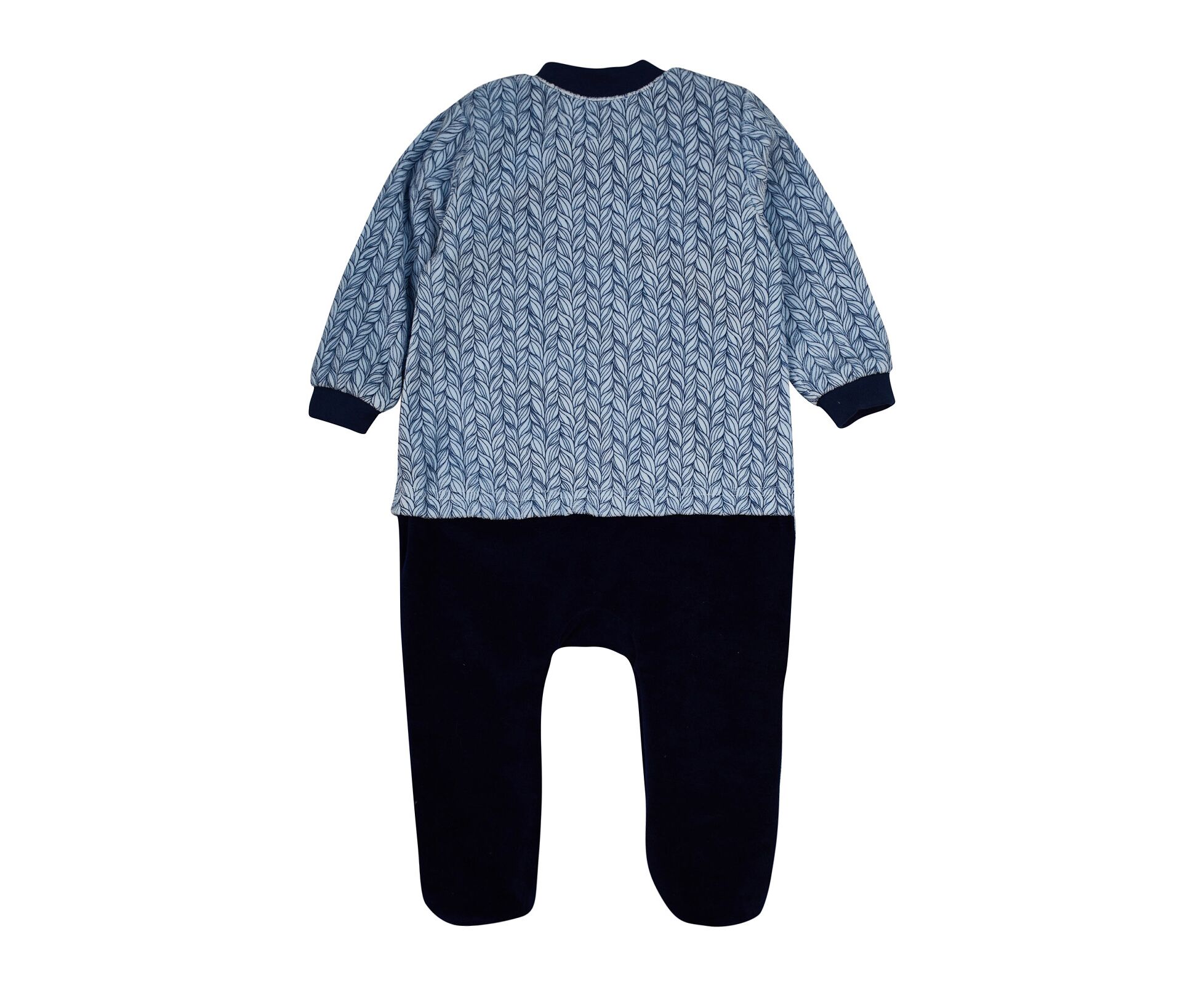 Стильний дитячий чоловічок з вишивкою, з м'якусенького, дуже приємного на дотик велюру. Вдале поєднання кольорів імітує комплект з кофточки та повзунків. Застібка асиметрична по переду на кнопки. Стійка та манжети рукавів з еластичного полотна. Якісна фурнітура та зручна посадка зроблять цю модель вашою улюбленою.