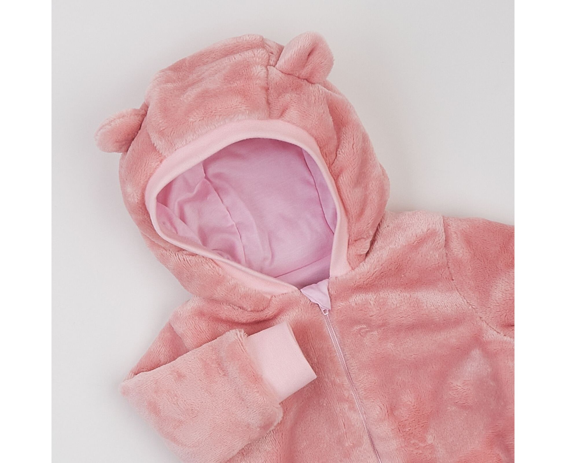 Теплий комбінезон з каптуром з прикольними декоративними вушками, для новонароджених, від українського виробника "Ляля" ідеально підійде на весну-осінь. Дуже м'який, теплий, комфортний на дотик. На переді центральна застібка до ластовиці на якісну тоненьку спіральну блискавку. Верхня частина застібки прикрита бавовняною планкою. По передньому краю каптура та по низкам рукавів - манжети з еластичної рібани. Виріб пошитий з приємному велсофту з м'яким та ніжним ворсом та повністю на бавовняній підкладці.. Велсофт добре тримає тепло, легкий в пранні, відмінно та швидо сохне, не втрачаючи форму та властивості.