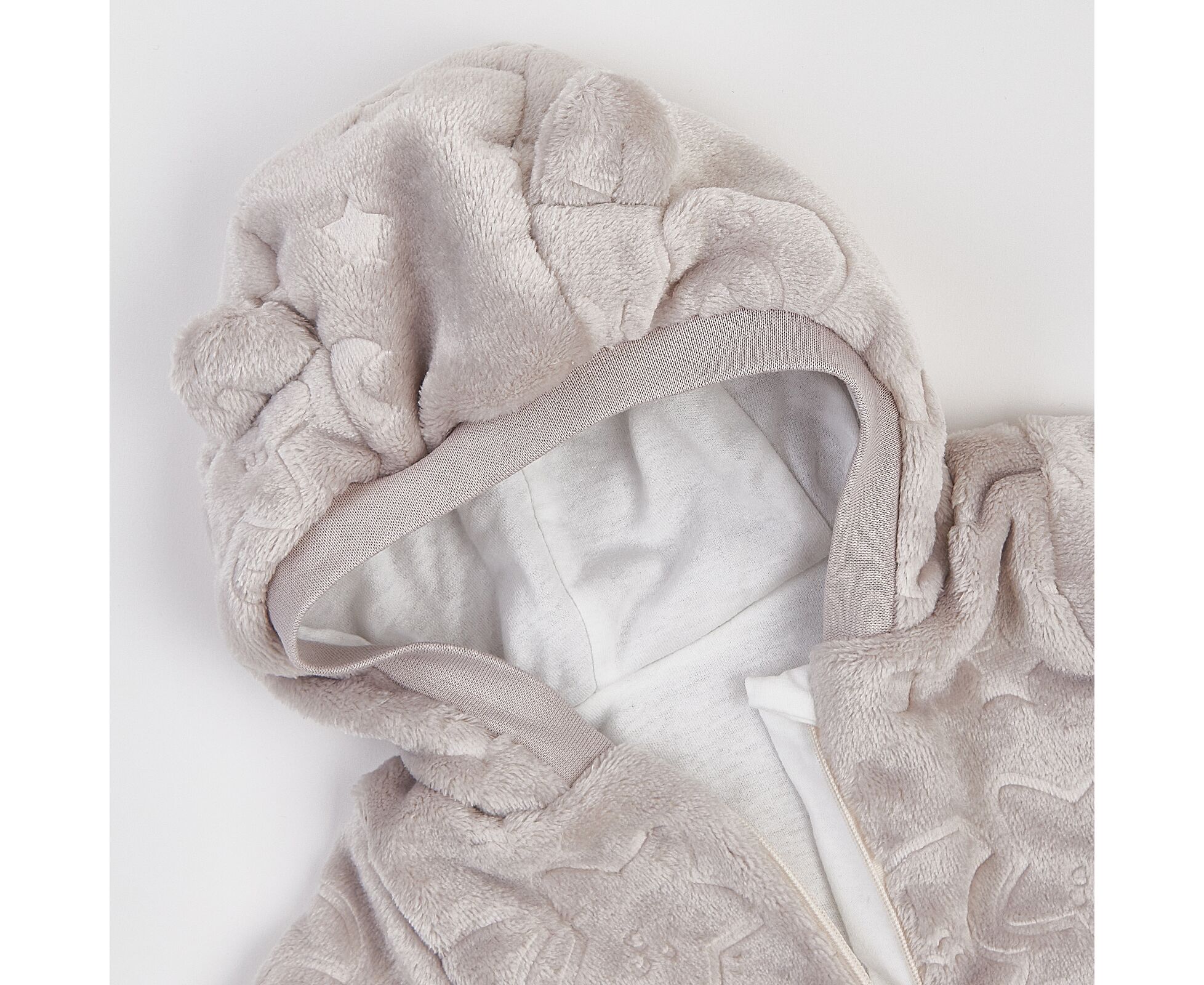 Теплий комбінезон з каптуром з прикольними декоративними вушками, для новонароджених, від українського виробника "Ляля" ідеально підійде на весну-осінь. Дуже м'який, теплий, комфортний на дотик, з бавовняною підкладкою всередині. На переді центральна застібка до ластовиці на якісну блискавку-трактор. Верхня частина застібки прикрита бавовняною планкою. По передньому краю каптура та по низкам рукавів - манжети з еластичної рібани. Виріб пошитий з велсофту з декоративним тисненням, з м'яким та ніжним ворсом та повністю на бавовняній підкладці. Велсофт добре тримає тепло, легкий в пранні, відмінно та швидо сохне, не втрачаючи форму та властивості.