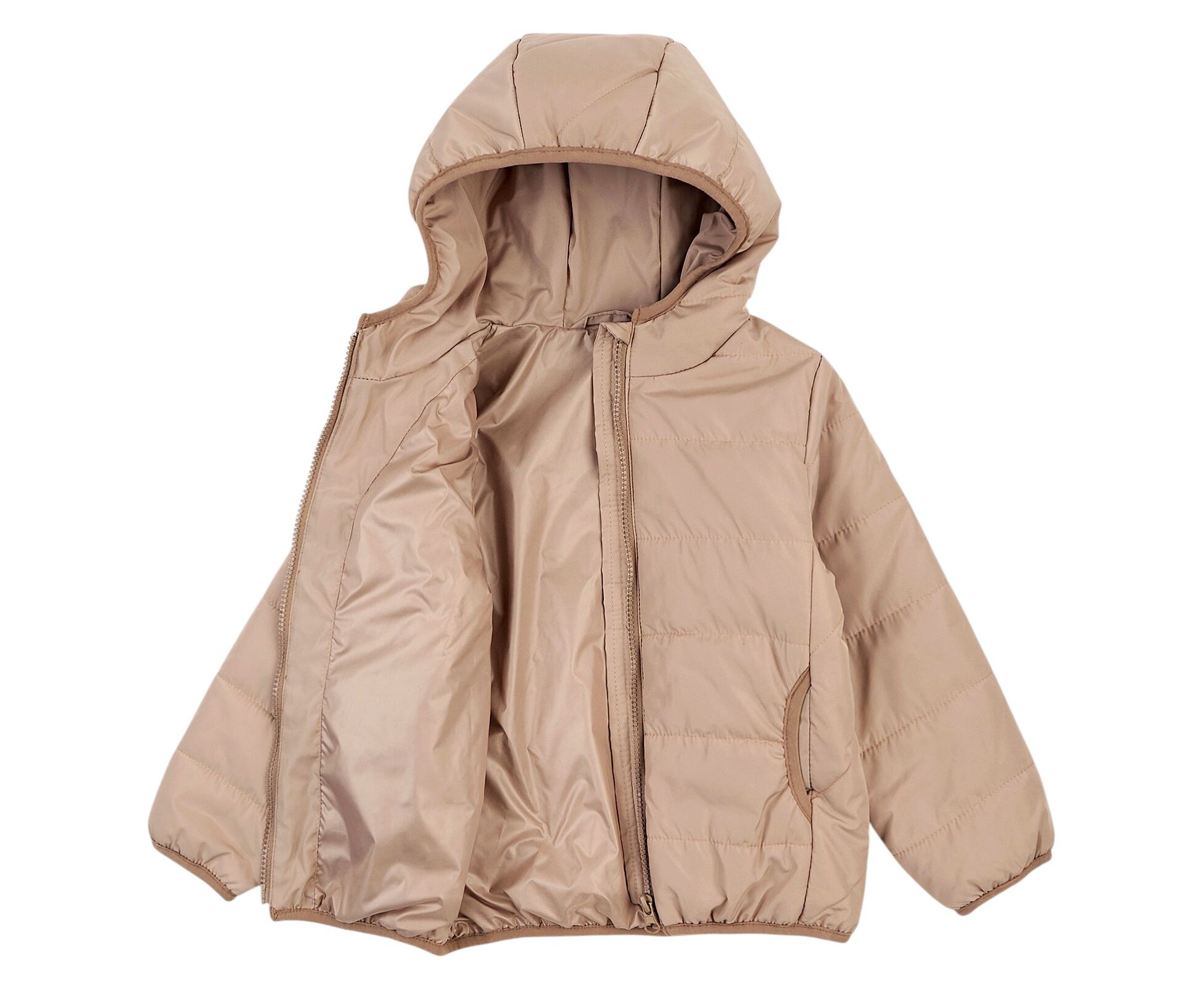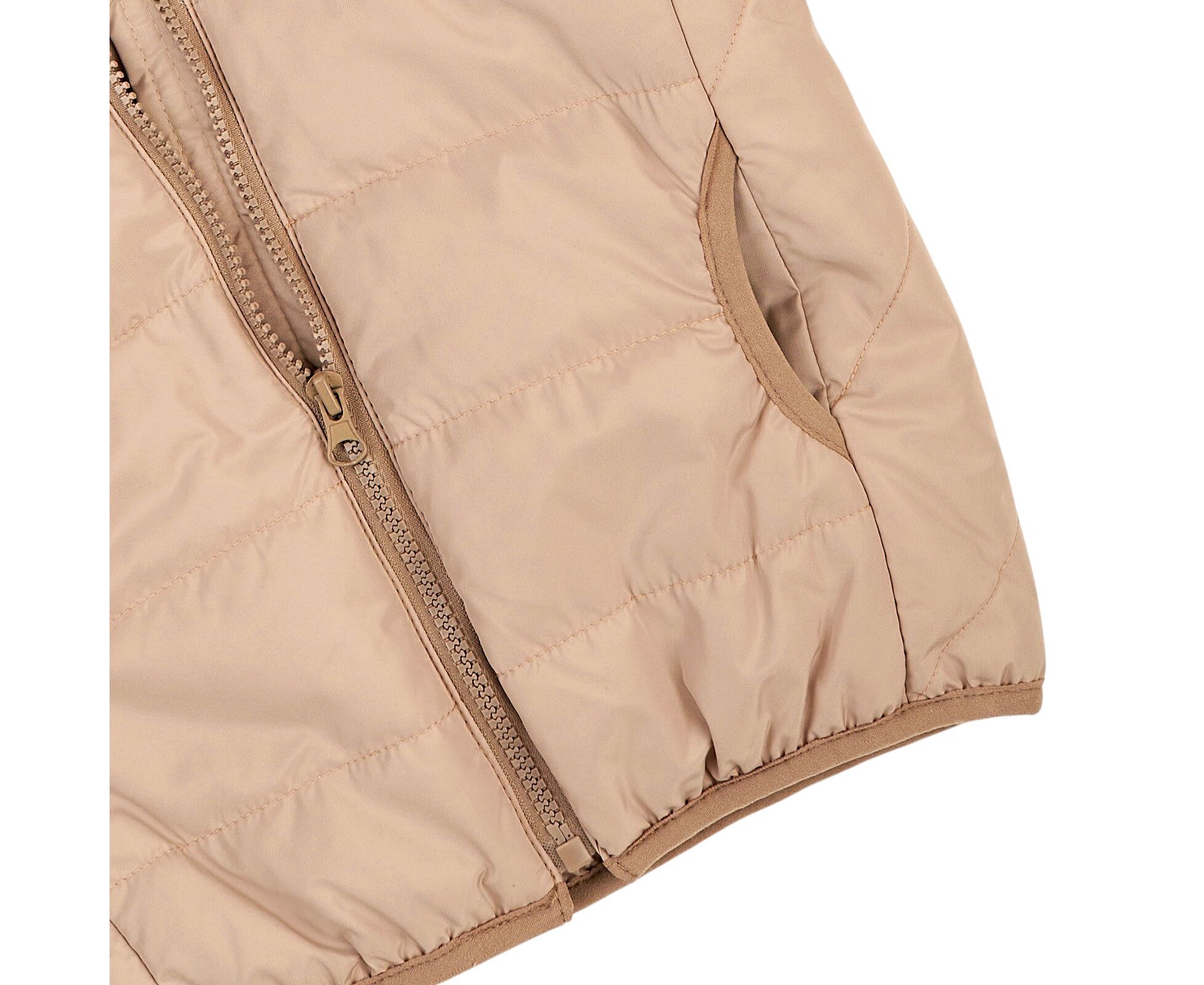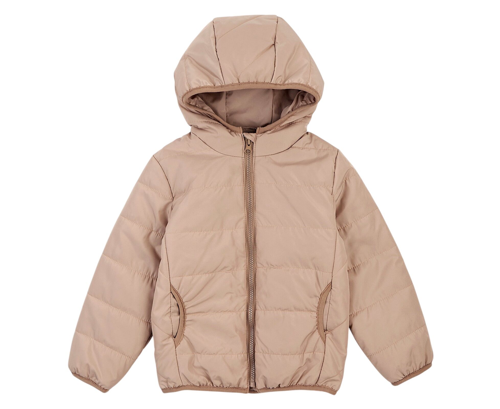 Демісезонна стьобана куртка з каптуром та накладними кишенями-кенгурушками на переді. Виготовлена з якісної матової плащовки з особливим просоченням, яке забезпечує водовідштовхувальні та вітрозахисні властивості. Простьобана з утеплювачем синтепух щільністю 150г/кв.м, який добре зберігає форму та об'єм навіть після багаторазового стиснення. Підкладка з тоненької плащовки Лаке, що робить виріб зручним для надягання на будь-який одяг. Центральна застібка - блискавка по всій довжині. Низ рукавів, низ виробу, вхід в кишені та передній край каптура оброблені еластичною тасьмою-пополамкою, що добре фіксує виріб та забезпечує йому захист від деформації у період експлуатації.