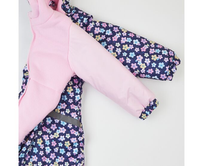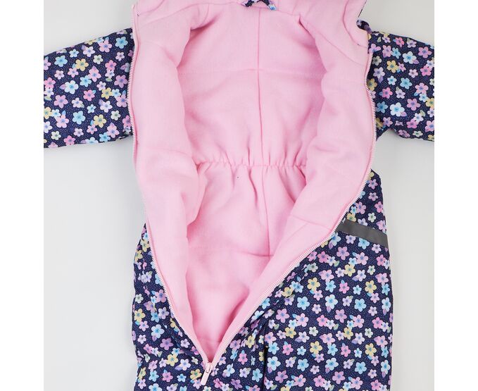 квіти на темно-синьому+рожевий фліс 80 (9-12 міс.) для дівчинки синій плащовка Верхняя одежда/Комбинезоны 80