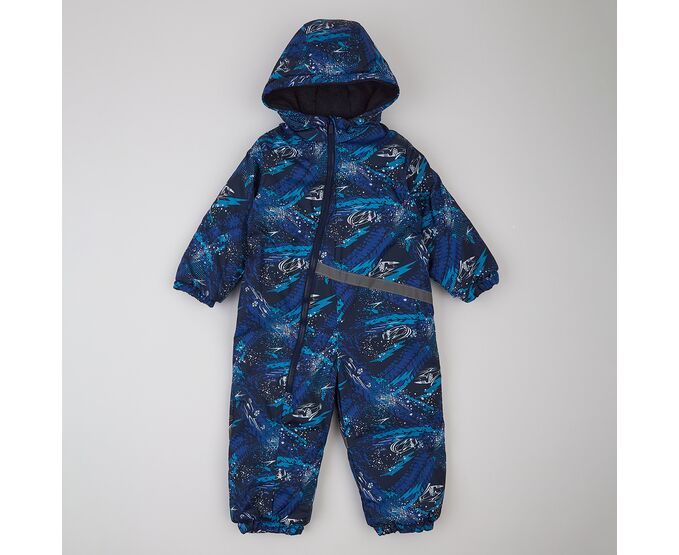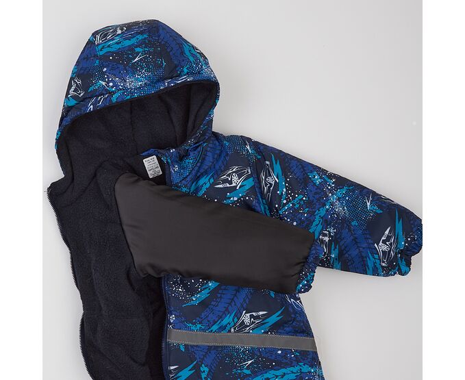 Демісезонний дитячий комбінезон від українського виробника "Ляля". Комбінезон з каптуром з вологовідштовхувальної плащовки з просоченням, підкладка з теплого та приємного на дотик флісу, утеплювач синтепух (щільністю 150г/кв.м) , який добре зберігає форму та об'єм, навіть після багаторазового стиснення. Застібка асиметрична, на якісній блискавці, низ ніжок та рукавів на еластичній тасьмі. Для полегшення надягання на дитину виворіт рукавів з гладкої тканини підкладки. Зпереду і ззаду комбінезон оздоблений світловідбивними елементами.