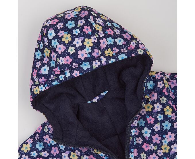квіти на темно-синьому+рожевий фліс 86 (1-1,5 роки) для дівчинки синій плащовка Верхняя одежда/Комбинезоны 86
