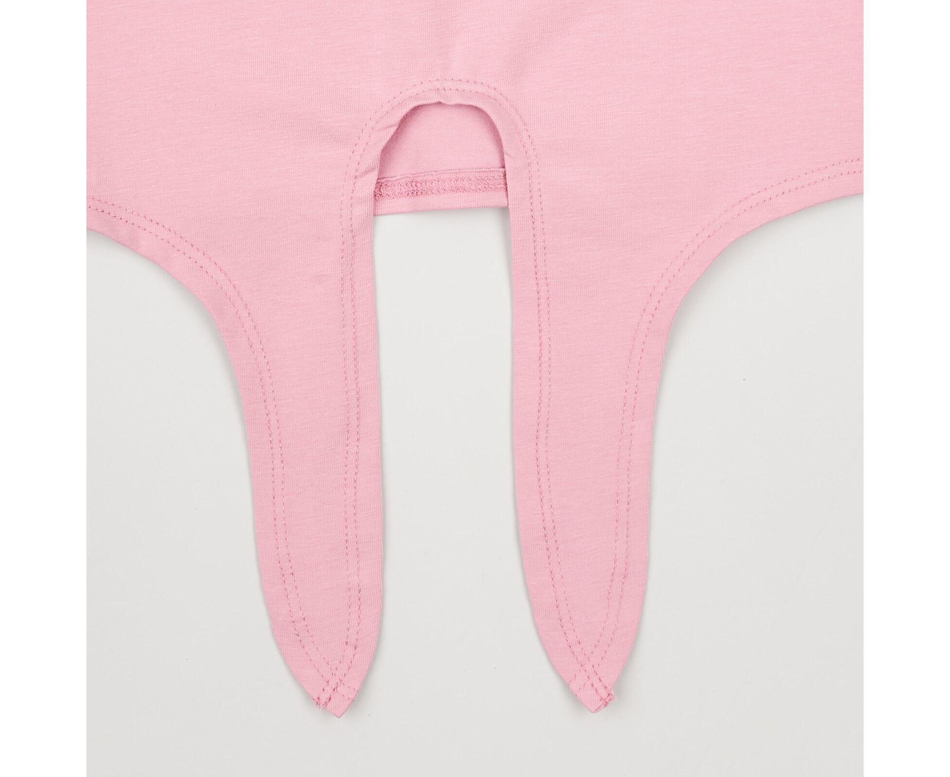 Футболка вільного крою з пудрового стрейч-куліру (97%бавовна 3%еластан) для дівчинки. Футболка з цільнокроєним рукавом, з відворотами по низу рукава, з зав'язками по низу виробу. Виріз горловини круглий , з пришивною планкою. На переді стильний друк з нашивками у вигляді пензликів-бахроми.