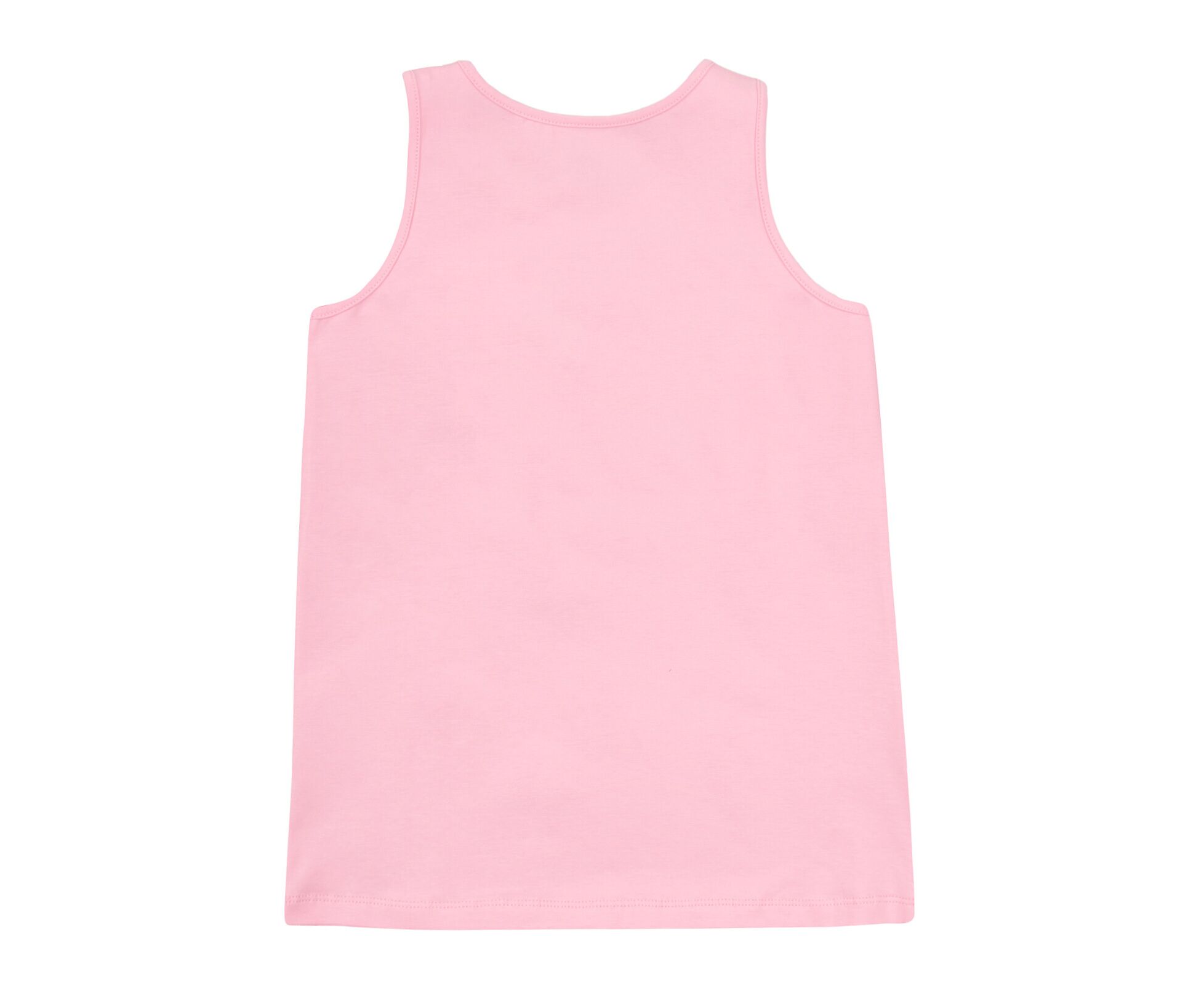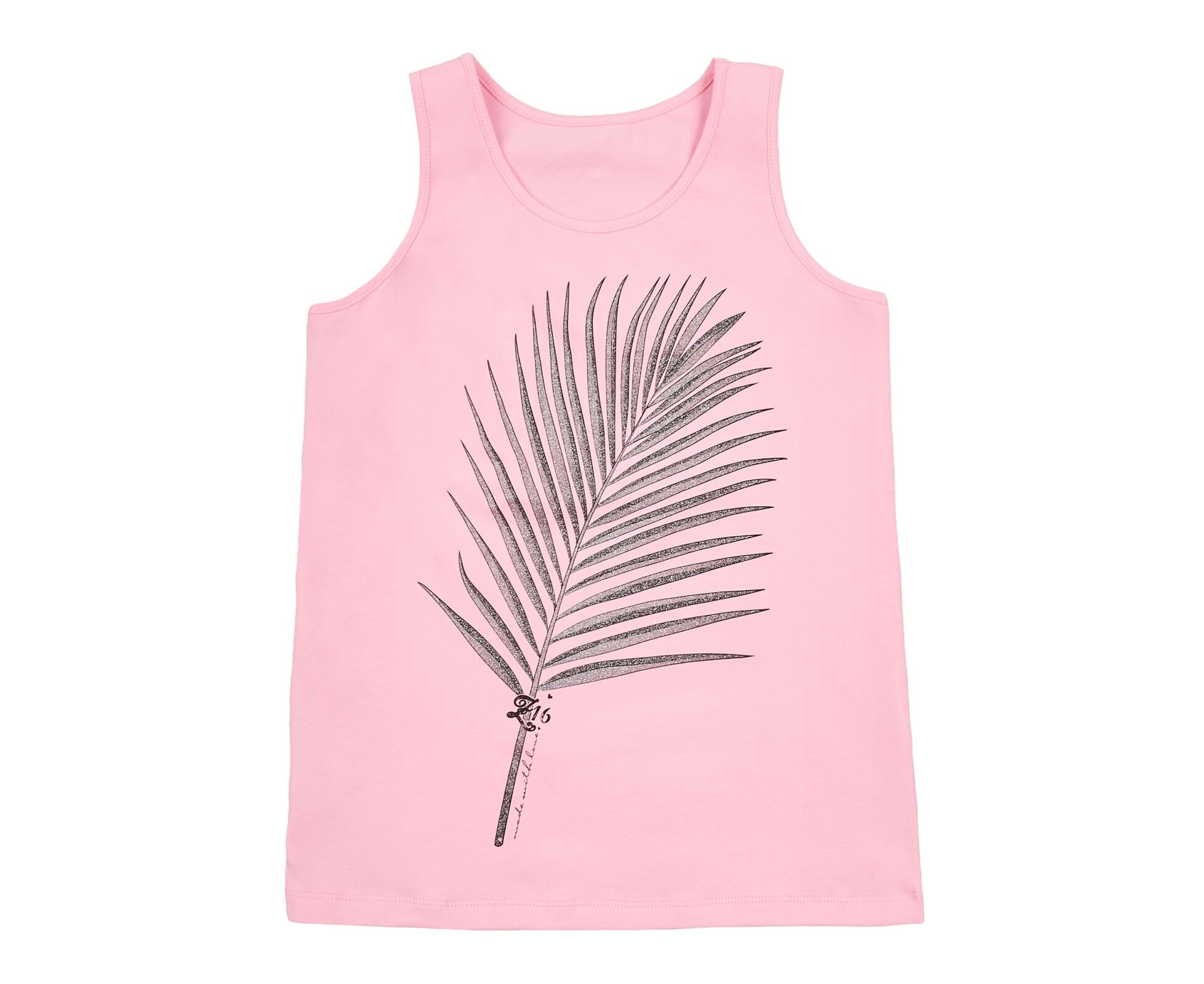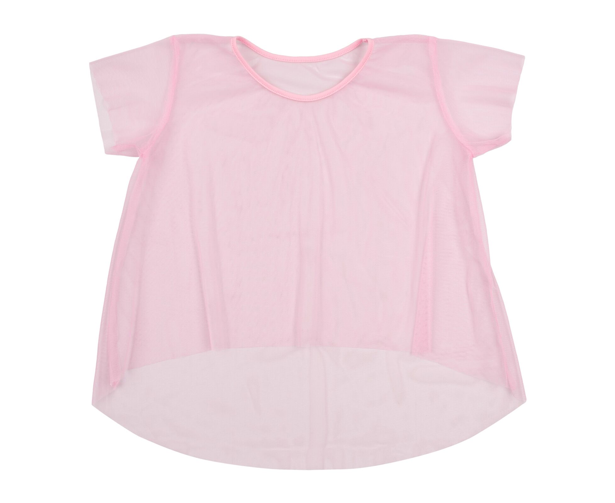 Комплект для дівчинки, з стрейч-кулірової майки та накидки з напівпрозорої євросітки. Майка з стильним принтом на переді, горловина та пройми окантовані руликом. Накидка вільного широкого крою, з необробленими зрізами. Круглий визір горловини окантований руликом.