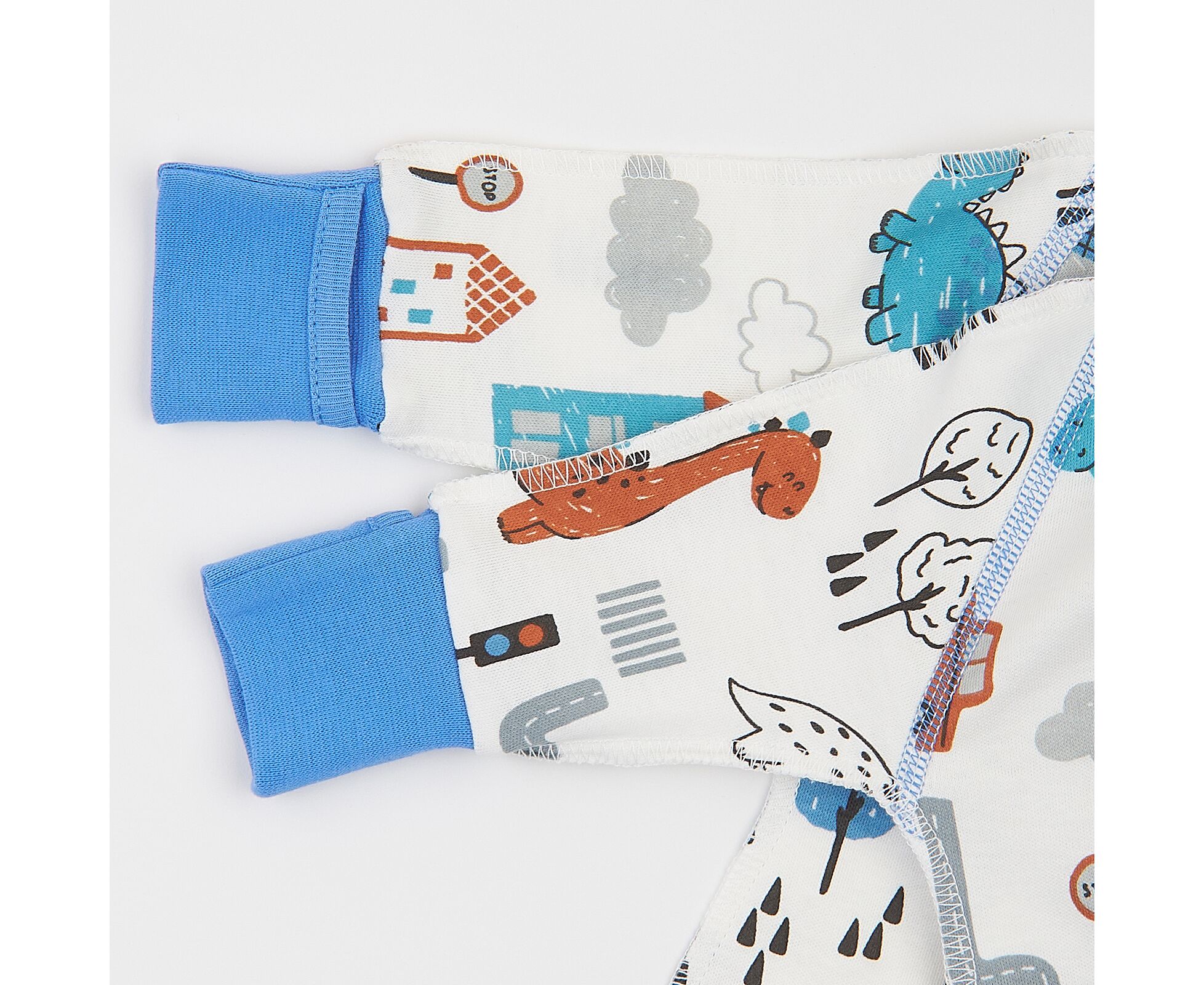 Чоловічок для новонароджених з м'якенького, приємного на дотик бавовняного інтерлока. Комбінезон з центральною застібкою на кнопки по борту та по ніжкам. Рукав реглан, стійка та манжети з еластичної рібани. Манжети з відворотом, що дозволяє перетворити їх в царапки. Натуральний склад полотна та шви назовні, які не торкаються шкіри малюка, виключають будь-який дискомфорт та подразнення.