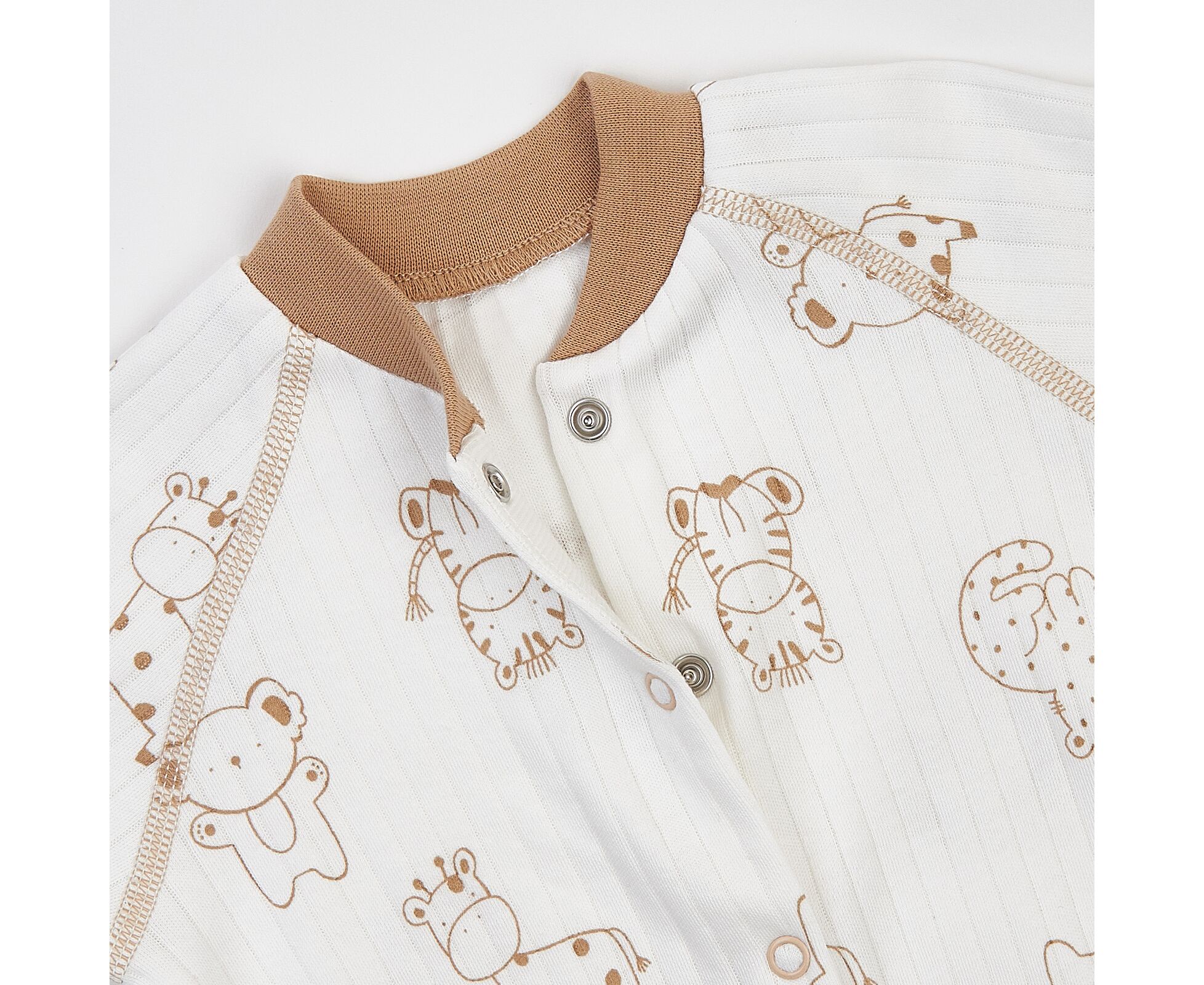 Чоловічок для новонароджених, з м'якенького, приємного на дотик бавовняного інтерлока преміум якості. Комбінезон з центральною застібкою на кнопки по борту та по ніжкам. Рукав реглан, стійка та манжети з еластичної рібани.