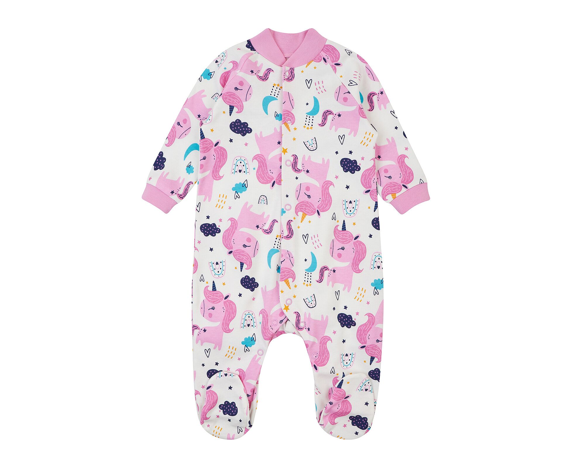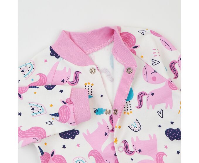 Чоловічок для новонароджених, з м'якенького, приємного на дотик бавовняного інтерлока. Комбінезон з центральною застібкою на кнопки по борту та по ніжкам. Рукав реглан, стійка та манжети з еластичної рібани.