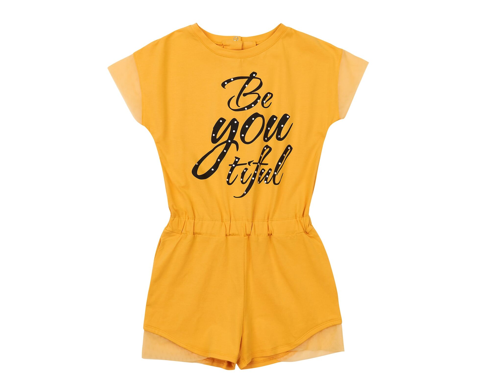 жовтий з зображенням тексту 134 (8-9 років) для дівчинки гірчичний стрейч-кулір Шорты/Комбинезоны 134 234248599