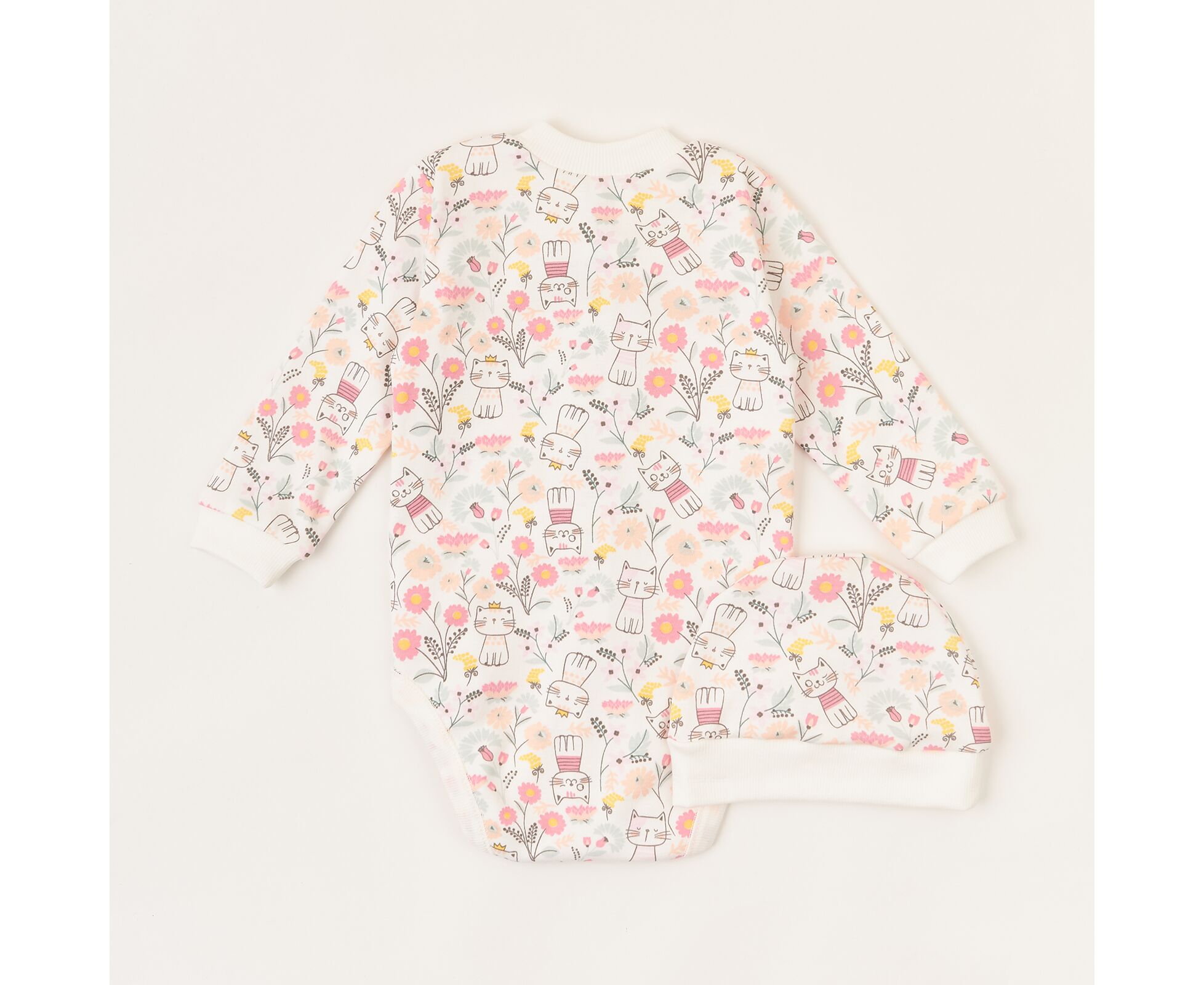 Дитячий комплект з боді з довгим рукавом та шапочки. Виготовлений з наздвичайно якісного бавовняного інтерлока. Застібка центральна бортова на кнопки.. Стійка, манжети рукава та окантовка по низу боді, а також планка шапочки - з еластичної рібани.