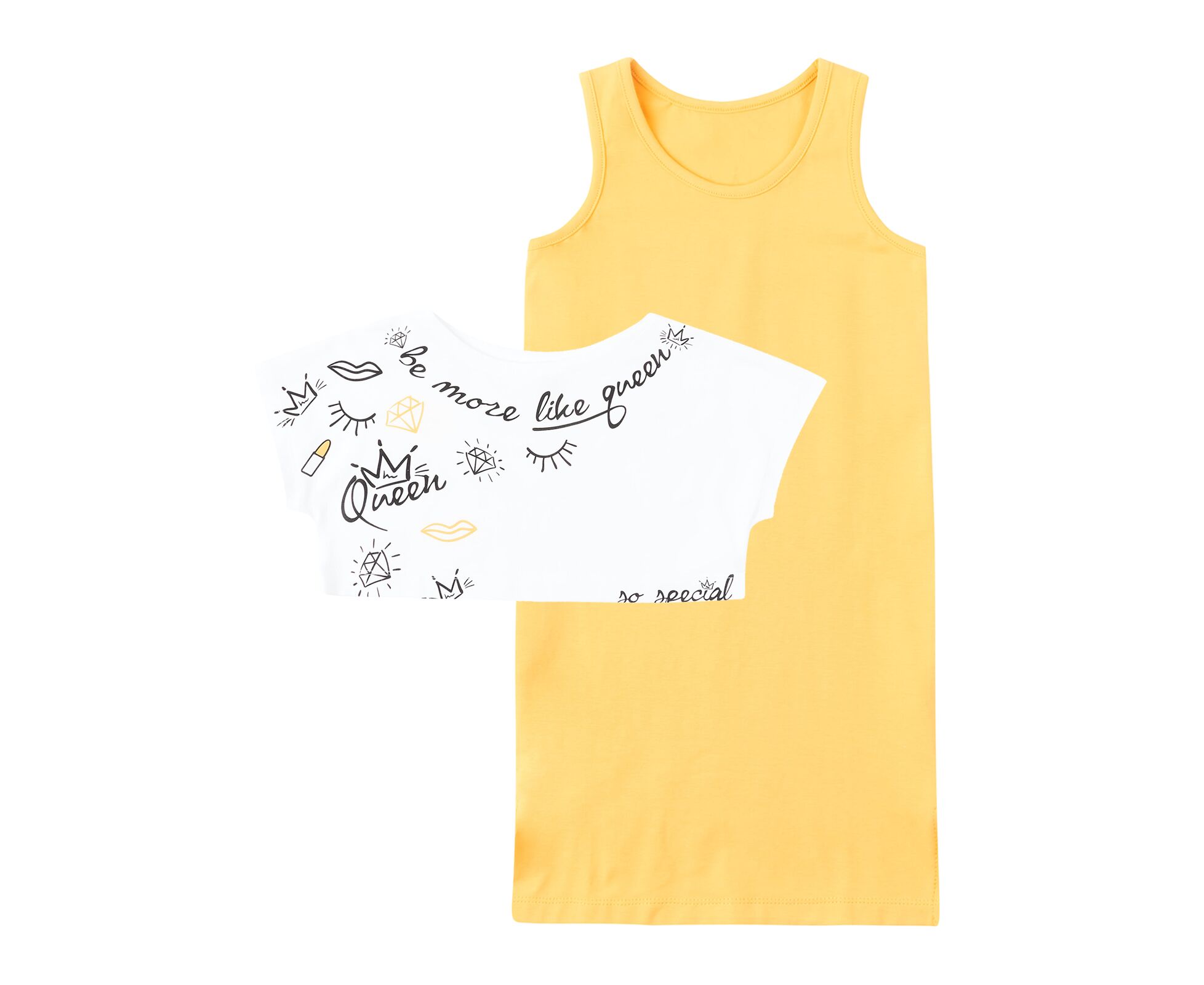 гірчичний+білий c принтом Queen 128 (7-8 років) для дівчинки помаранчевий стрейч-кулір Летние комплекты 128 234249097