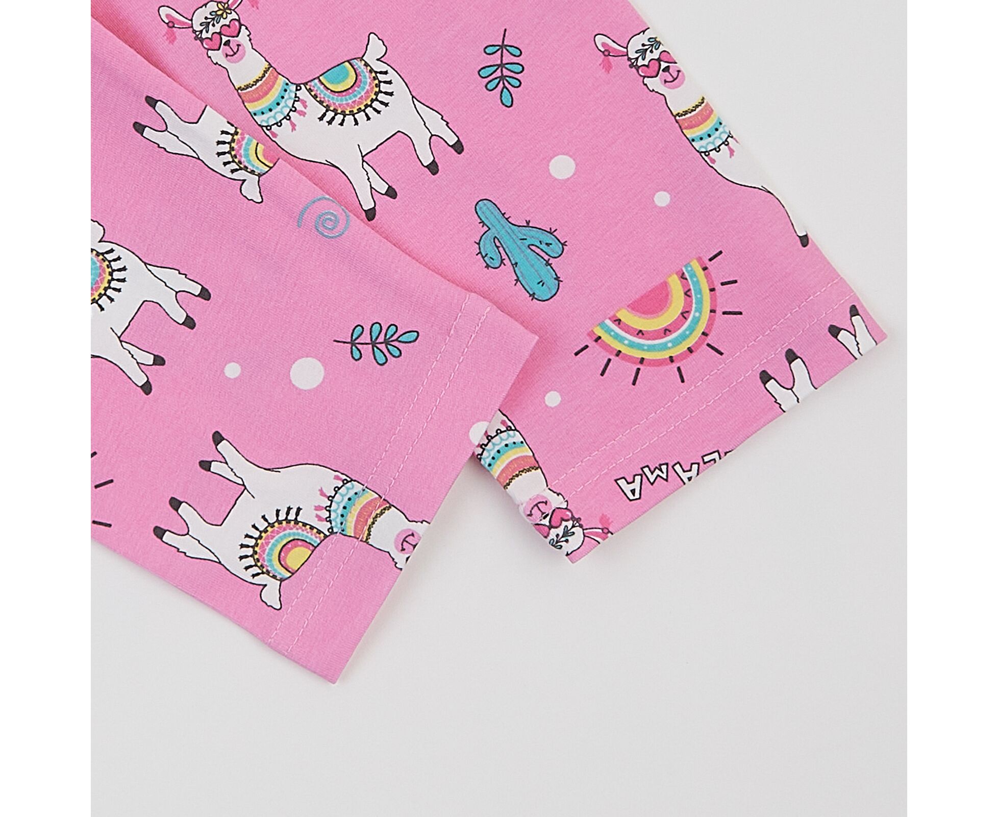 Літній дитячий комплект з футболки та лосин 3/4. Комплект виготовлений з стрейч-куліру преміум-якості (бавовна з еластаном), який добре зберігає колір та форму навіть після багаторазового прання. Футболка оверсайз з спущеним рукавом. Лосини з цільнокроєним поясом на резинці, добре облягають фігуру, не сковують рухи дитини.