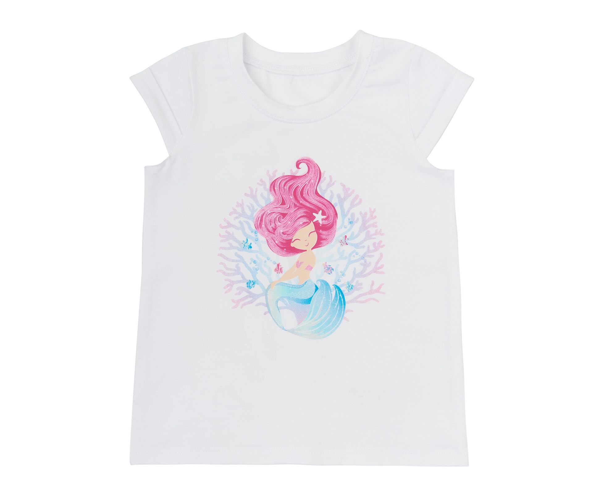 Літній комплект для дівчинки з класичної футболки та лосин. Виготовлений з якісного стрейч-куліру , який добре тримає колір та форму навіть після багаторазового прання. Футболка з яскравим принтом на переді та рукавом-крильцем з відворотом по низу. Лосини з цільнокроєним поясом на резинці, добре облягають фігуру, не сковують рухи дитини.