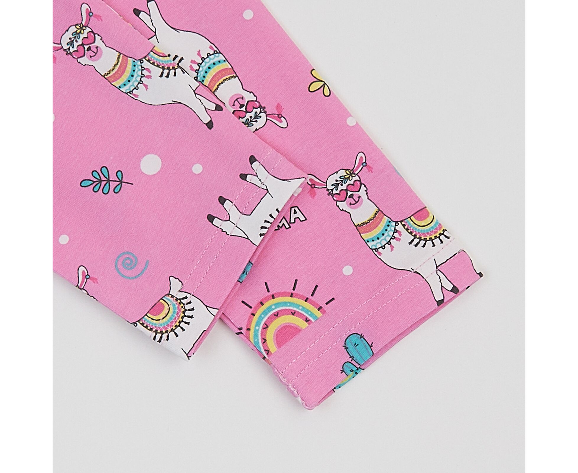 Літній дитячий комплект з футболки та довгих лосин. Комплект виготовлений з стрейч-куліру преміум-якості (бавовна з еластаном), який добре зберігає колір та форму навіть після багаторазового прання. Футболка оверсайз з спущеним рукавом. Лосини з цільнокроєним поясом на резинці, добре облягають фігуру, не сковують рухи дитини.