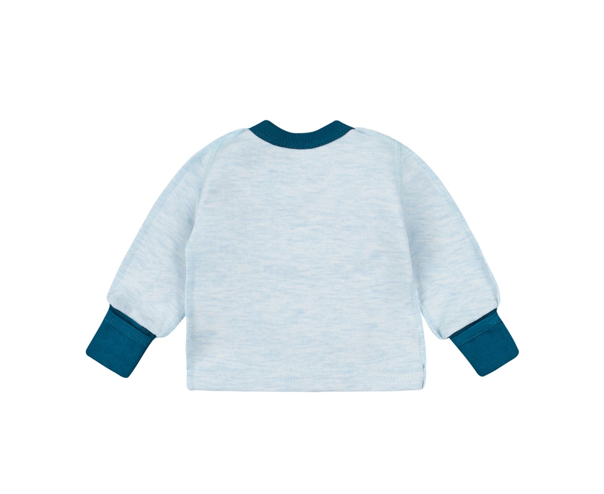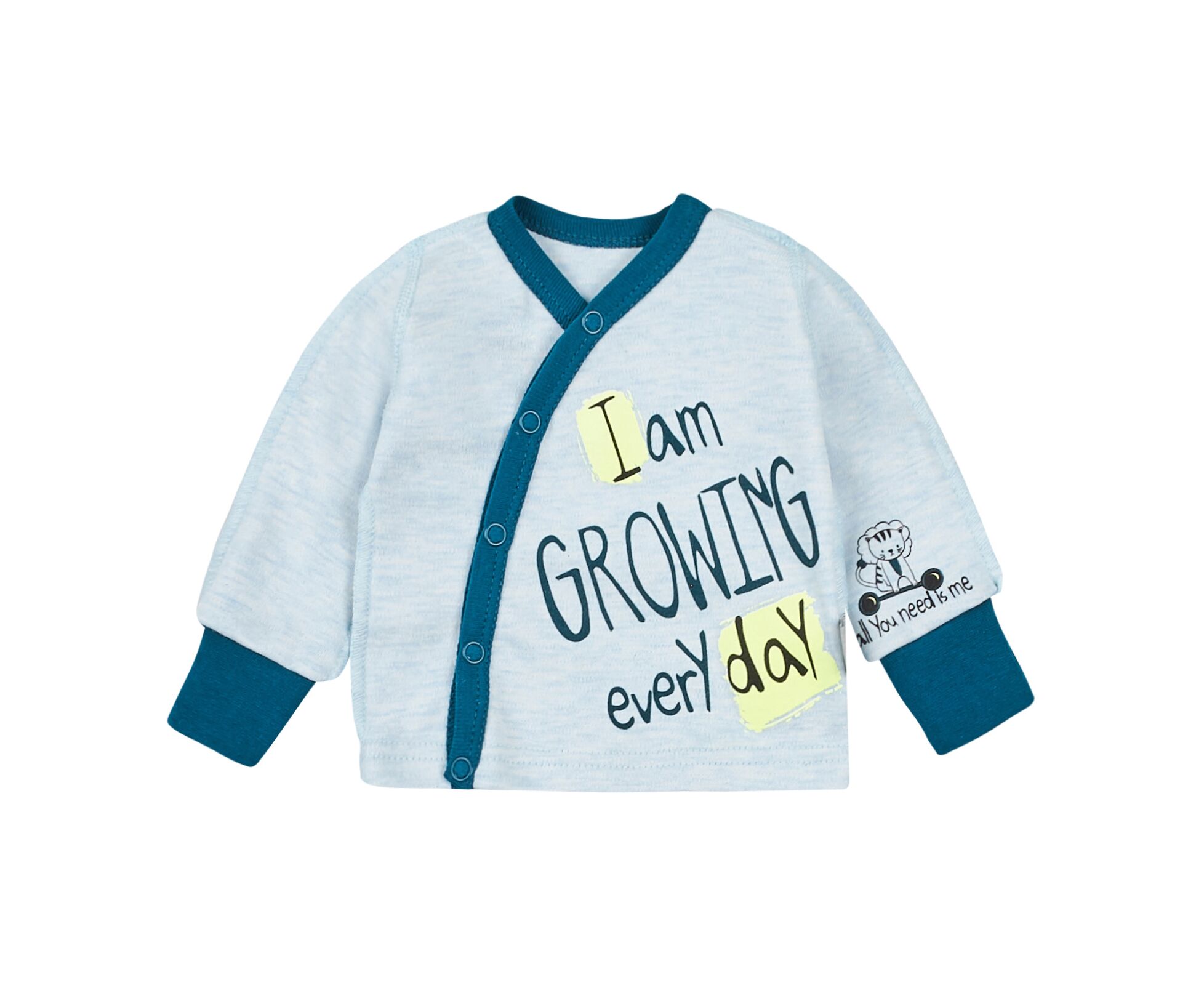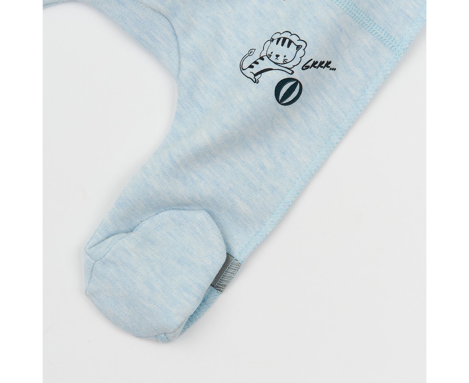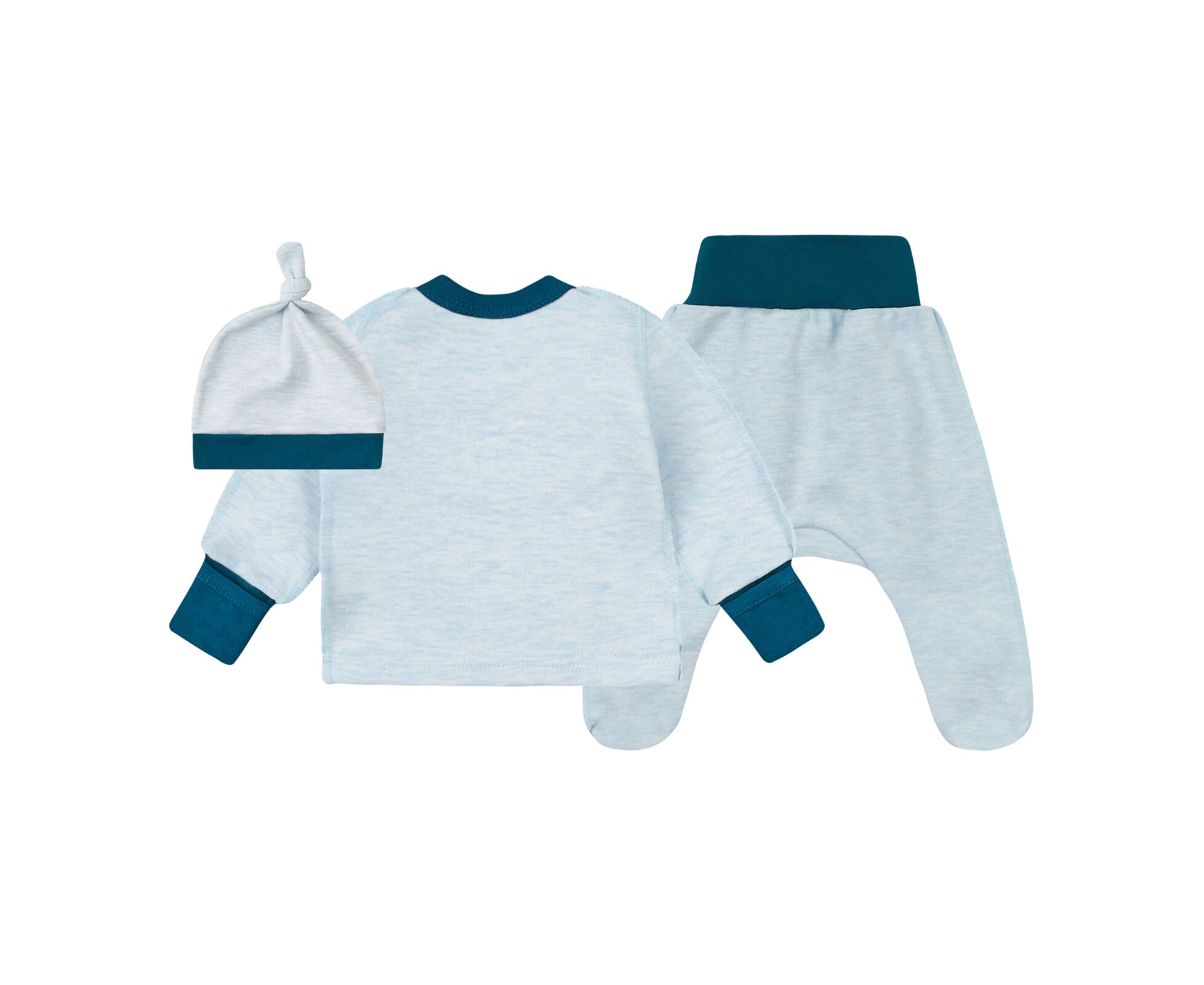Дитячий комплект з льолі з довгим рукавом, повзунків та шапочки. Виготовлений з наздвичайно якісного бавовняного інтерлока. Льоля з стильним принтом на пілочці та на рукаві. З асиметричною застібкою по переду на кнопки. Зрізи льолі оброблені окантовкою з контрасної бавовняної рібани. Манжети по низу рукава льолі з еластичної рібани та з відворотом, що дозволяє перетворити їх в царапки. Повзунки з ластовицею, без середніх швів, з поясом з еластичної рібани. Шапочка-ковпачок з декоративним вузликом та планкою з еластичної рібани. Натуральний склад полотна та шви назовні в усіх виробах комплекту, які не торкаються шкіри малюка, виключають будь-який дискомфорт та подразнення.