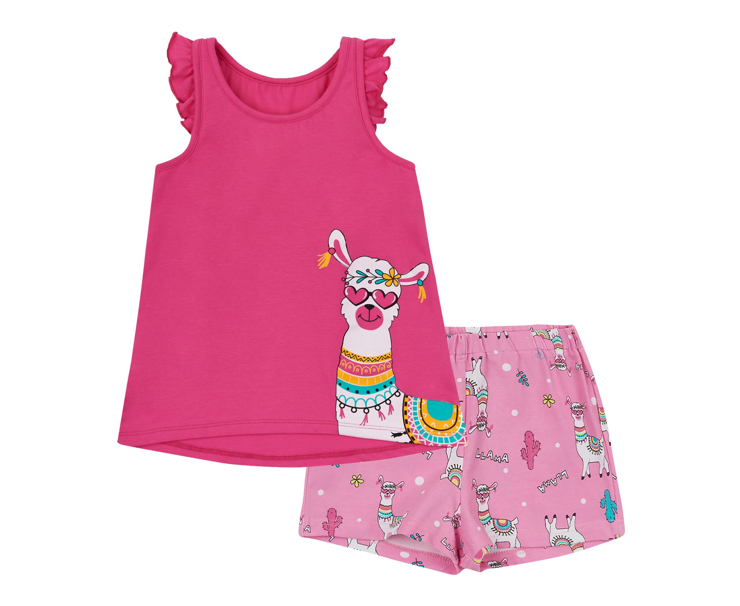 лами на рожевому 122 (6-7 років) для дівчинки рожевий стрейч-кулір Летние комплекты 122 376512540