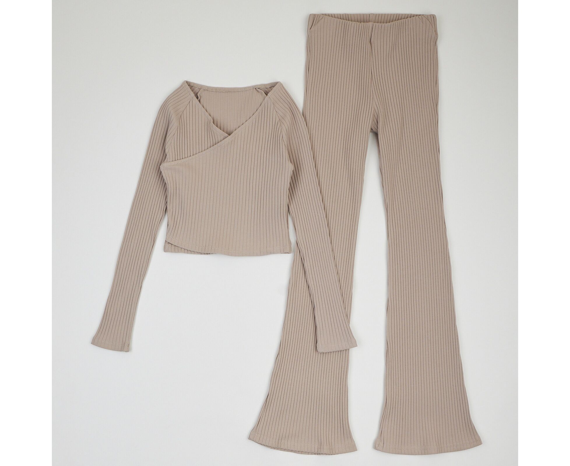 Супер зручний та комфортний комплект для дівчинки, з яким ви зможете із легкістю зібрати капсулу з образів та міксувати речі. Включає штани-кльош із високою талією та топ із довгим рукавом, що надають вашому образу енергії та стилю. Комплект виготовлений з якісного, м'якого, приємного на дотик еластичного стрейч-куліру з фактурою рубчик, який добре тримає форму та колір навіть після багаторазового прання. Топ з запахом на переді, горловина переду зафіксована проложеною по зрізу гумкою, що забезпечує гарне прилягання до тіла. Висока посадка та фасон кльош штанів створють ефектну лінію, що візуально подовжує ноги. Оригінальна обробка поясу штанів з еластичною гумкою всередині також підкреслює стильність виробу.