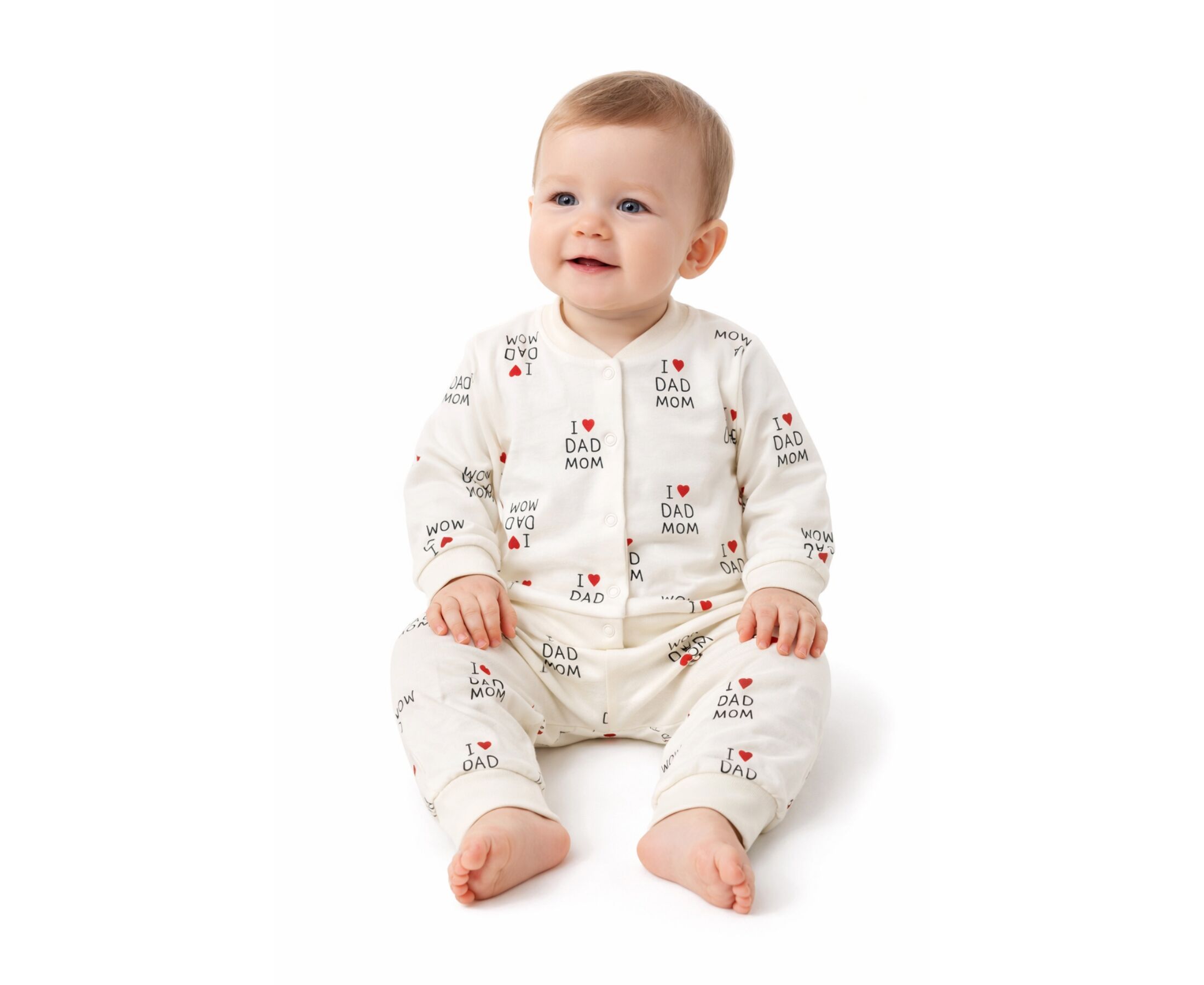 I love dad mom на молочному 80 (9-12 міс.) унісекс молочний (екрю) інтерлок Малыши/Комплекты/Комплекты с длинным рукавом 80