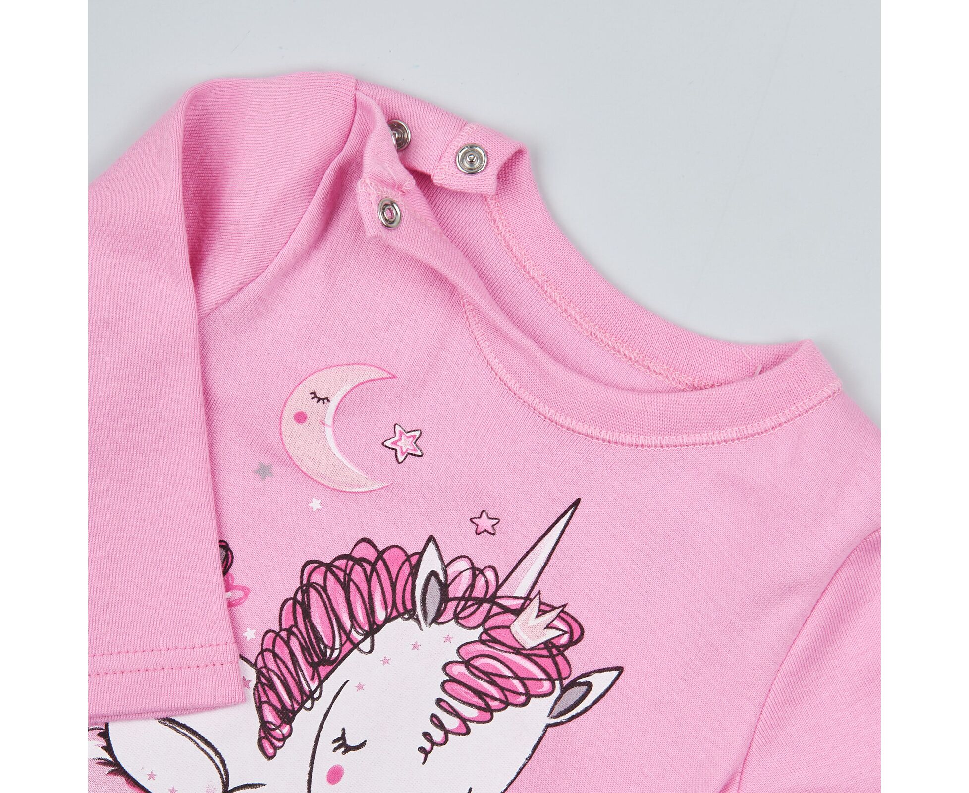 Натільний реглан для малюків, виготовлений з повністю натуральної бавовняної рібани без еластану, що добре тримає форму та, завдяки трикотажному переплетенню, добре розтягується, що полегшує надягання на дитину. Реглан з довгим рукавом, з застібкою на кнопки на одному плечі. По переду стильний друк.