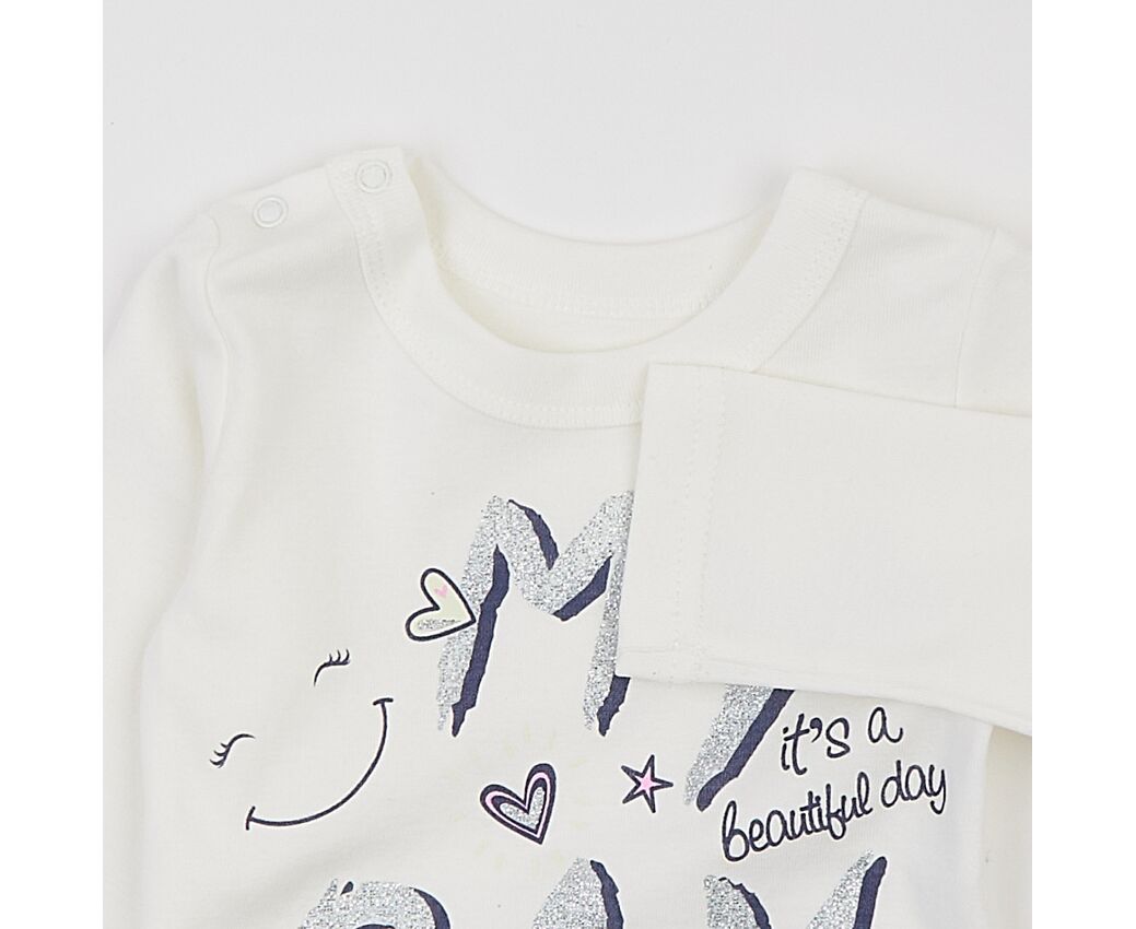 Натільний реглан для малюків, виготовлений з повністю натуральної бавовняної рібани без еластану, що добре тримає форму та, завдяки трикотажному переплетенню, добре розтягується, що полегшує надягання на дитину. Реглан з довгим рукавом, з застібкою на кнопки на одному плечі. По переду стильний друк.