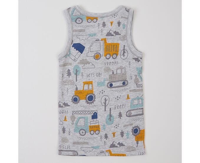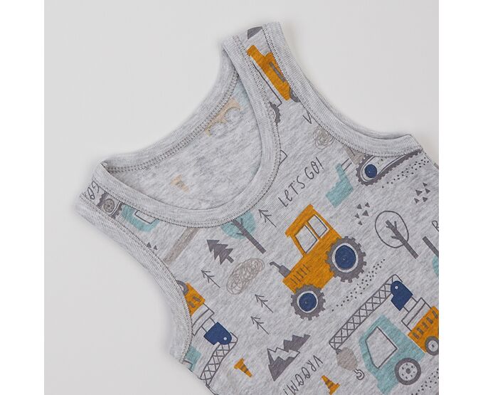 Майка для хлопчика, з набивної бавовняної рібани без еластану преміум якості. Пройми та горловина оброблені окантовкою, низ прямий.