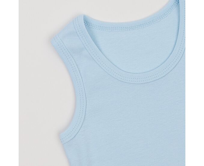 Майка дитяча, з бавовняної рібани без еластану. Пройми та горловина оброблені окантовкою.