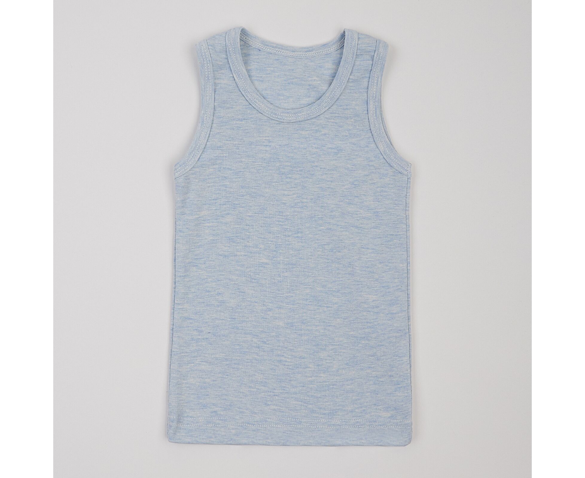 Майка дитяча, з меланжевої бавовняної рібани без еластану. Пройми та горловина оброблені окантовкою.