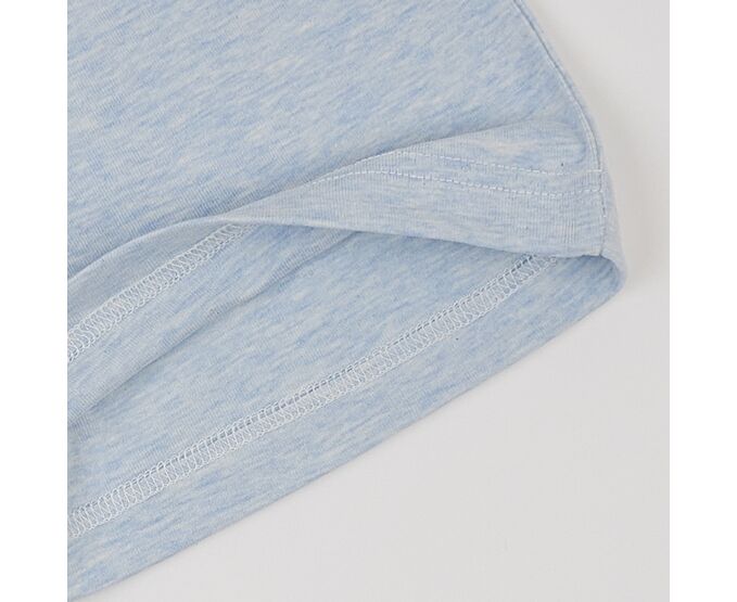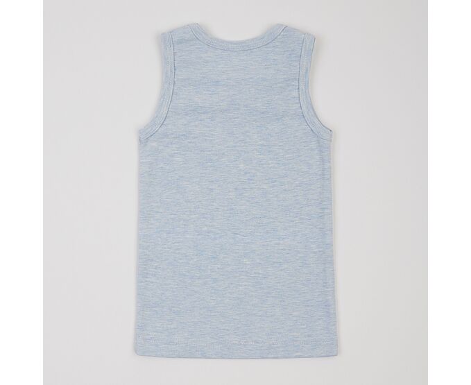 Майка дитяча, з меланжевої бавовняної рібани без еластану. Пройми та горловина оброблені окантовкою.