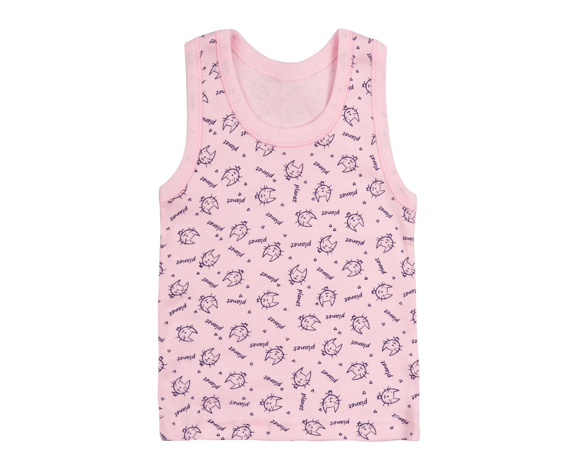 Майка дитяча, з бавовняної рібани без еластану. Пройми та горловина оброблені окантовкою.