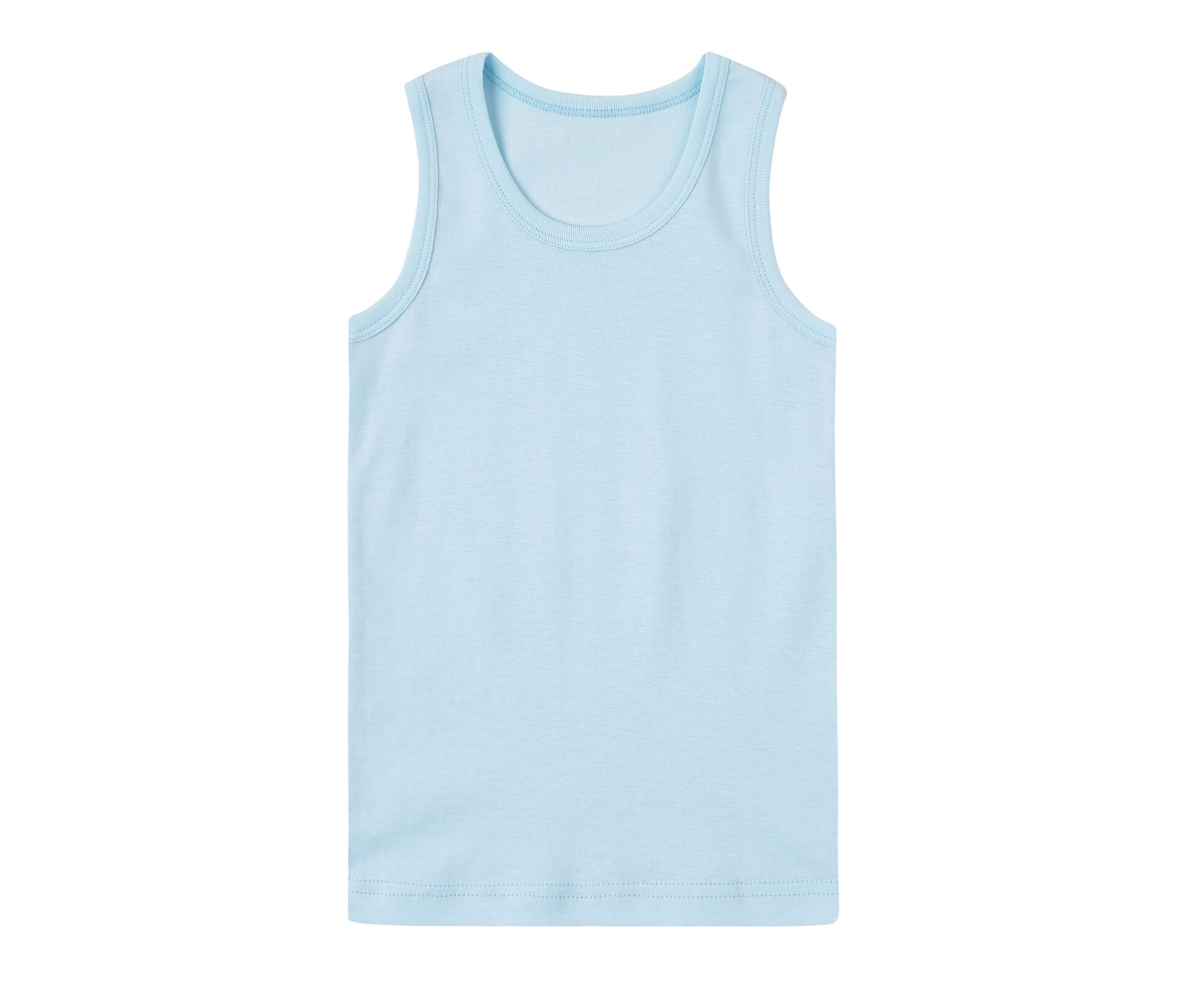 Майка дитяча, з бавовняної рібани без еластану. Пройми та горловина оброблені окантовкою.