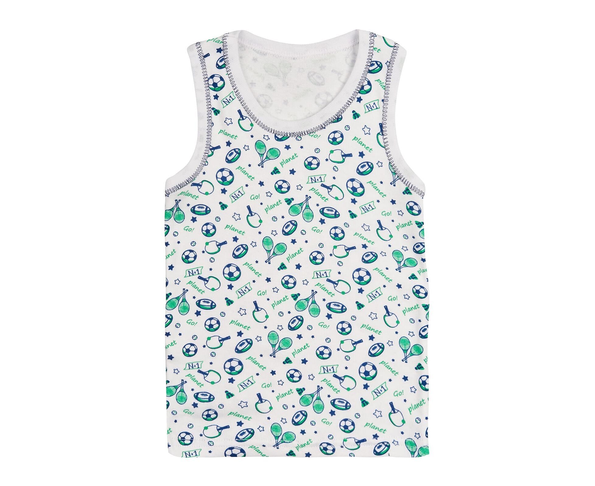 Майка дитяча, з бавовняної рібани без еластану. Пройми та горловина оброблені окантовкою.