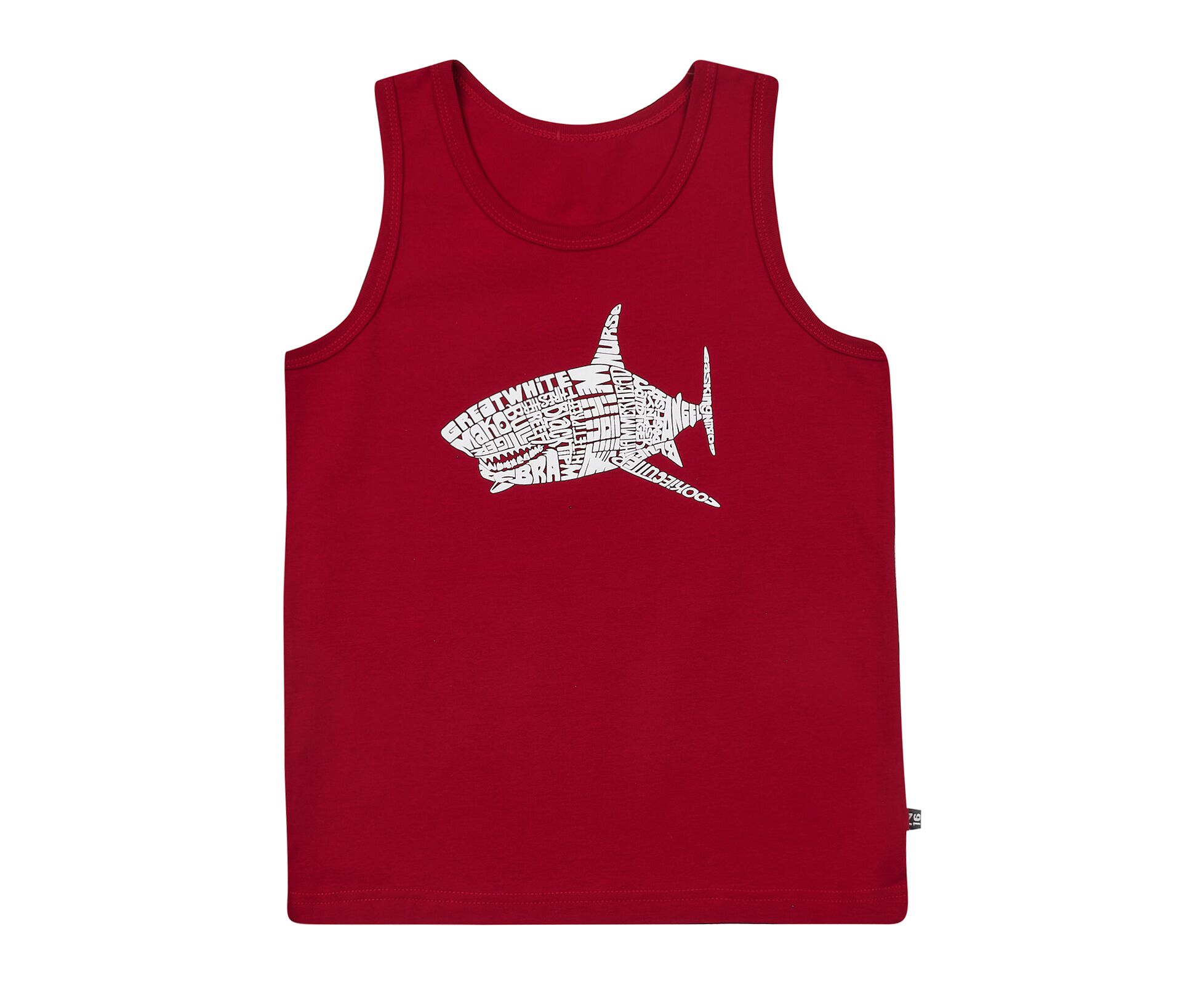 Майка для хлопчика з білого стрейч-куліру (97%бавовна 3%еластан), з друком на переді. Горловина та пройми оброблені рібаною без еластану .