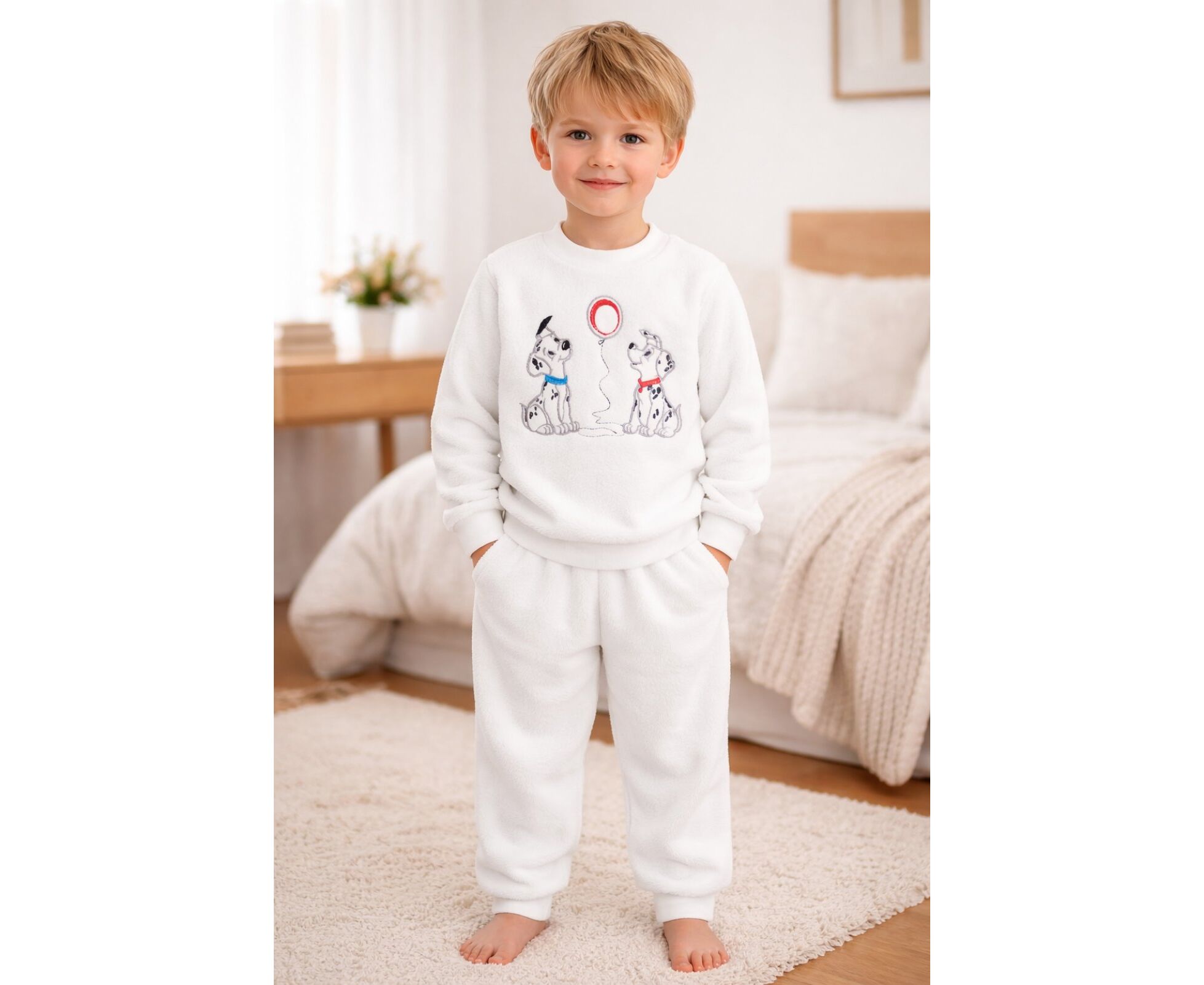 Тепла дитяча піжама з м'якого, дуже приємного на дотик вельсофту. Стійка з еластичного полотна, по плечу застібка на дві кнопки. На переді вишивка. По низу кофтинки, низу рукавів та низкам штанів манжети з еластичного полотна.