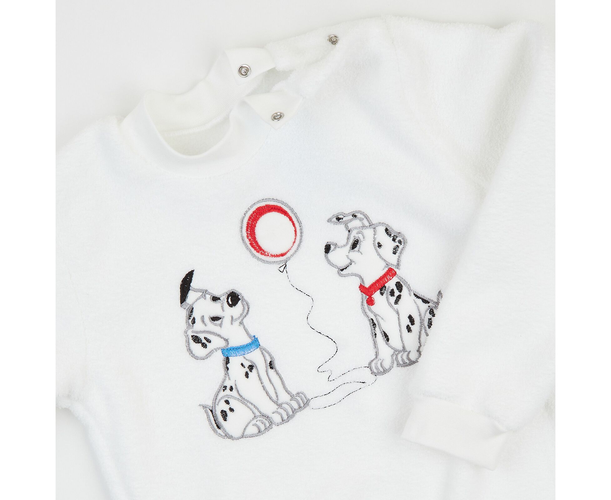 Тепла дитяча піжама з м'якого, дуже приємного на дотик вельсофту. Стійка з еластичного полотна, по плечу застібка на дві кнопки. На переді вишивка. По низу кофтинки, низу рукавів та низкам штанів манжети з еластичного полотна.