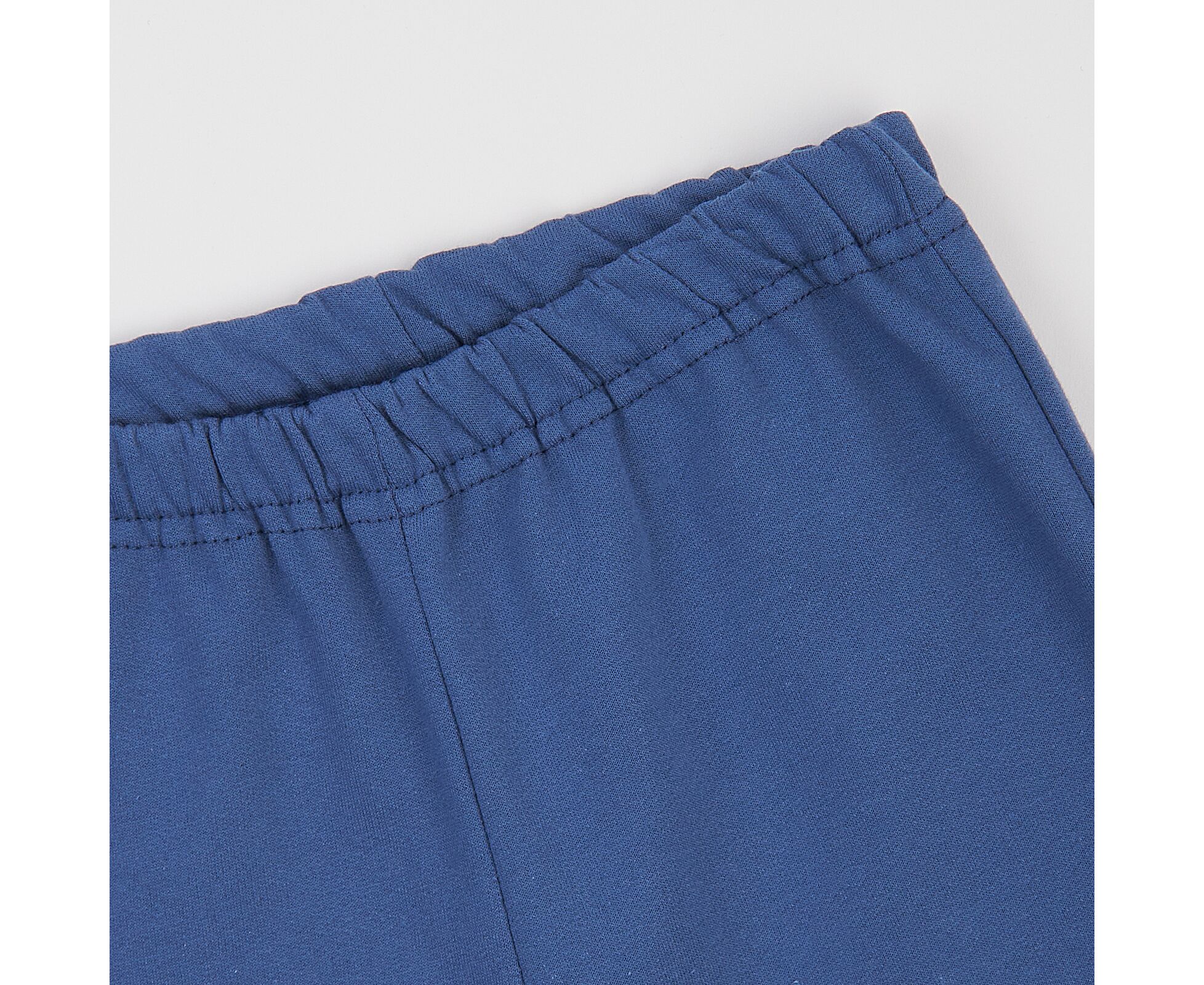 Теплий дитячий комплект домашнього одягу (піжама), з м'якого, дуже приємного на дотик футеру з начосом, що добре тримає форму навіть після багаторазового прання та не скачується. Реглан з еластичною планкою по круглому вирізу горловини, по низу з притачним поясом з еластичного полотна, без застібки. Штани з цільнокроєним поясом на резинці, довжину резинки можна регулювати. По низу штанів, та по низу рукавів реглана - манжети з еластичної рібани.