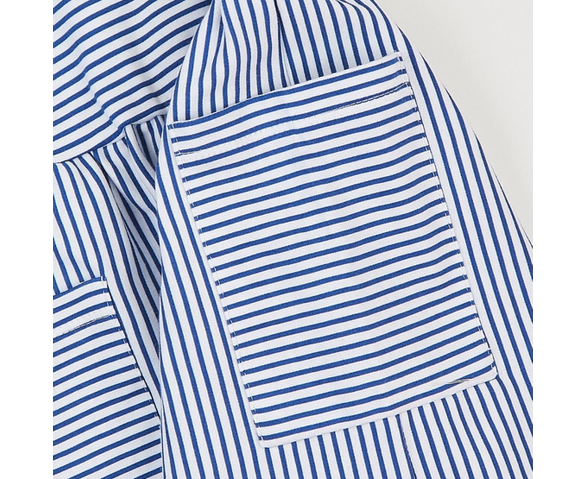 Літній сарафан в синьо-білу полоску з натурального 100%бавовняного тоненького інтерлоку. Великі накладні кишені, призборка по талії та оригінальний виріз на спинці надають виробу стильності та зручності.