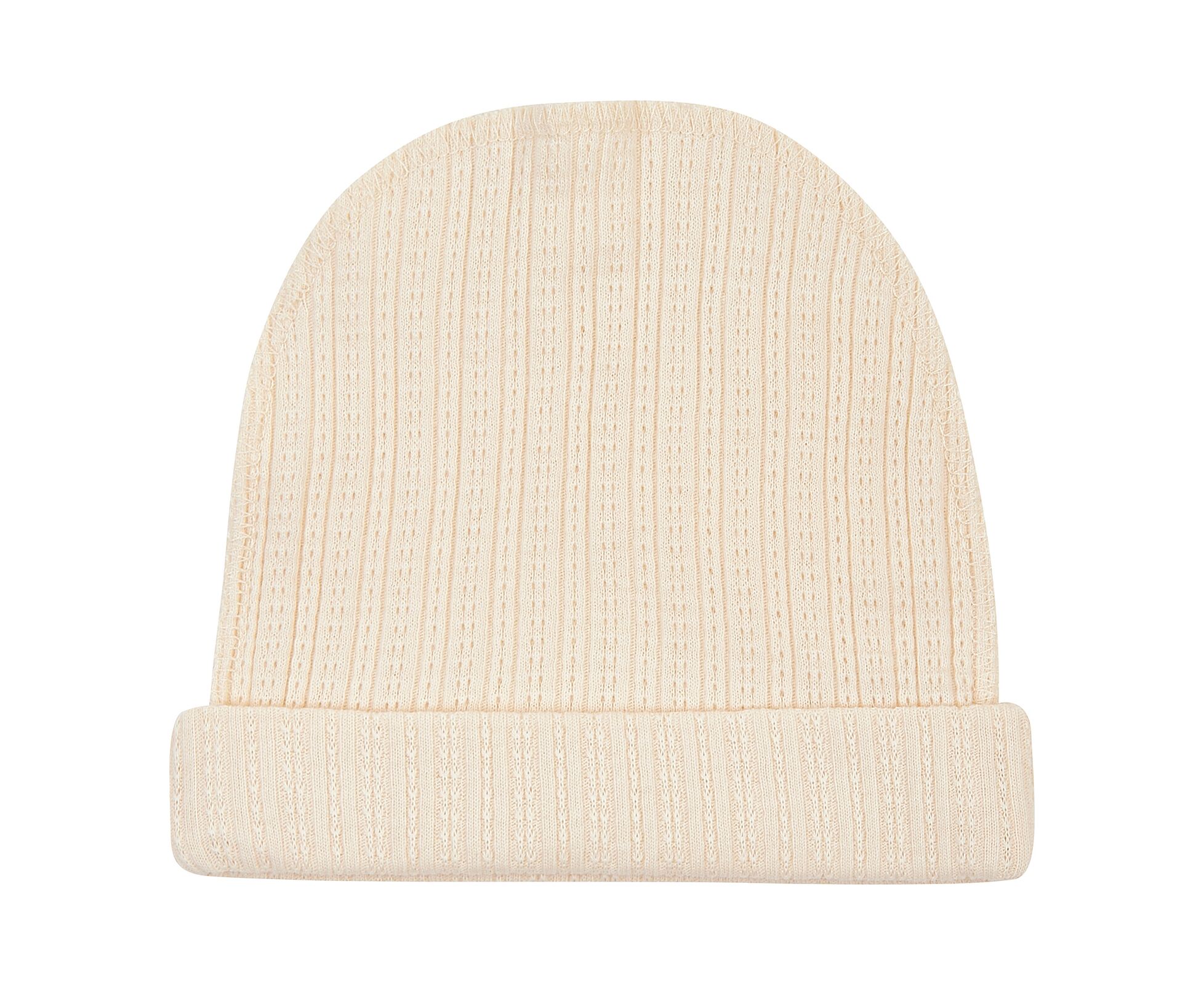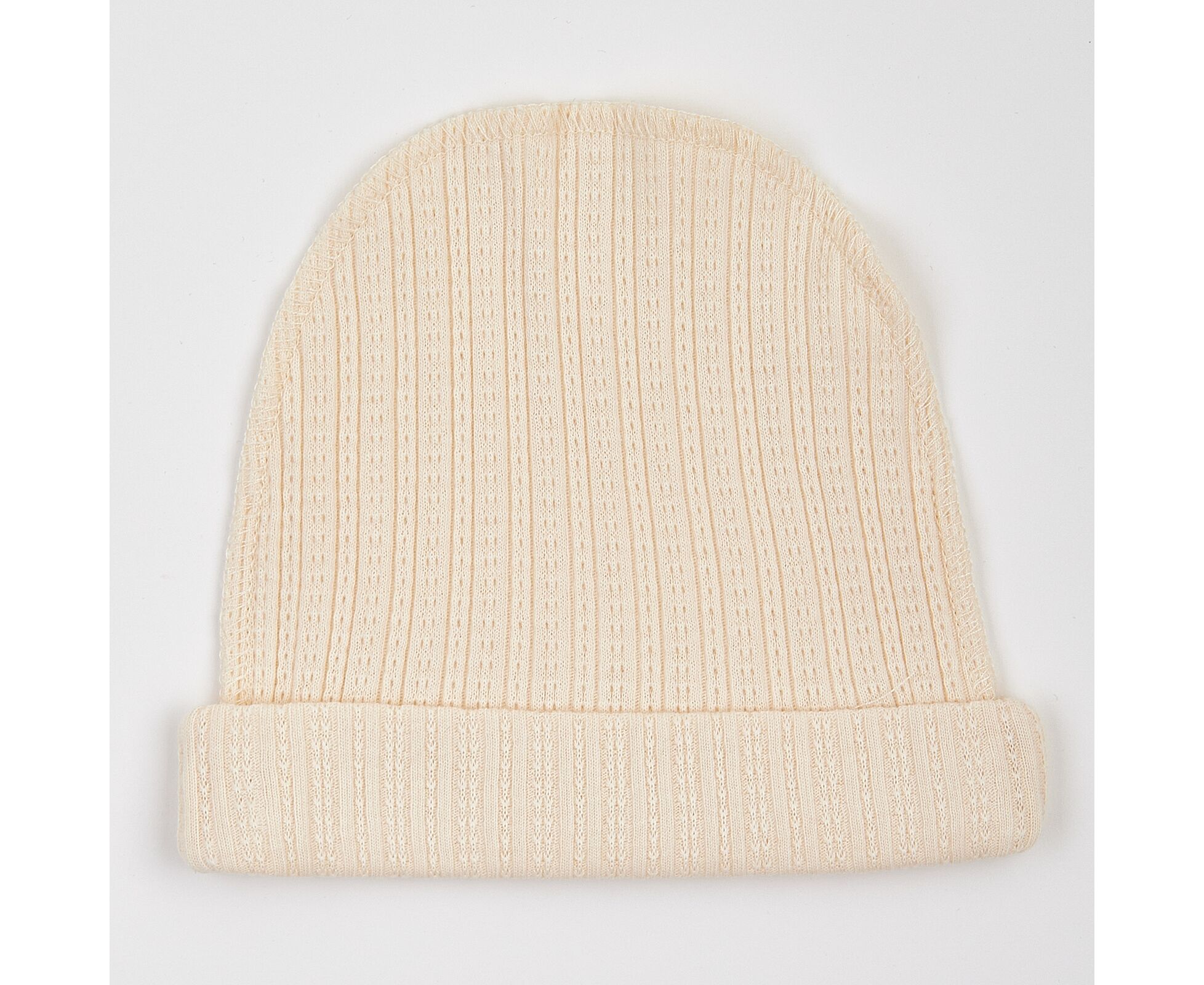 Шапочка-ковпачок з відворотом для новонароджених, з наздвичайно м'якої, приємної на дотик 100% бавовняної трикотажної тканини - ажур. Шви виробу назовні і не торкаються шкіри дитини, виключаючи будь-який дискомфорт та подразнення.