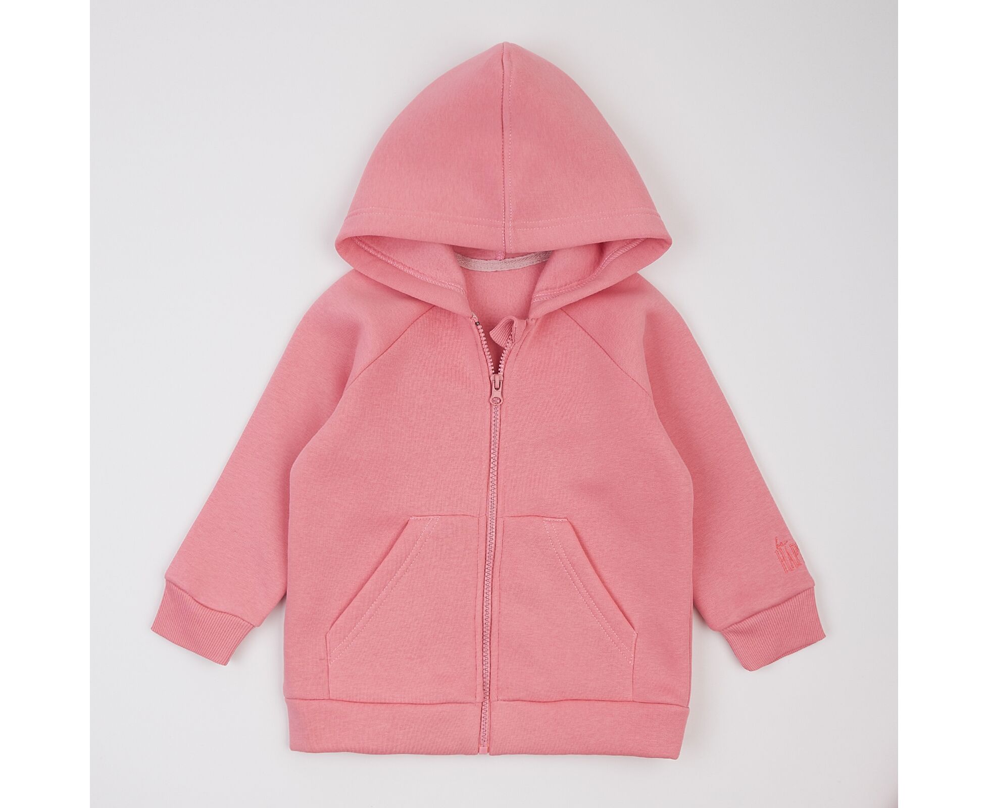 Стильний костюм з теплої, з приємним на дотик начосом всередині, трьохнитки преміум якості. Кофта з каптуром, з кишенею-кенгурушкою На рукаві невеличка вишивка. Центральна застібка на блискавку-трактор, шви горловини та блискавки зсередини закриті бавовняною оздоблювальною тасьмою. По низу рукавів кофти та по низкам штанів - манжети з еластичного фактурного полотна. В пояс продіта еластична гумка.