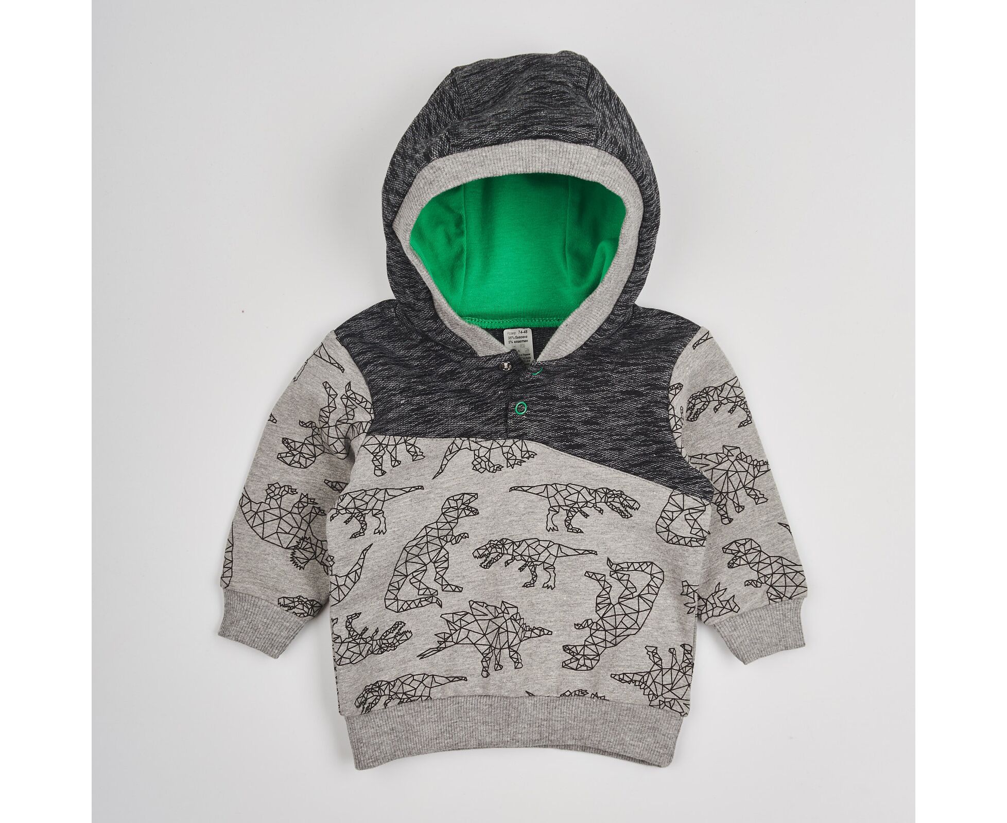 динозаври на сірому+чорно-сірий меланж 74 (6-9 міс.) для хлопчика сірий двонитка Регланы/Свитшоты 74 52767144