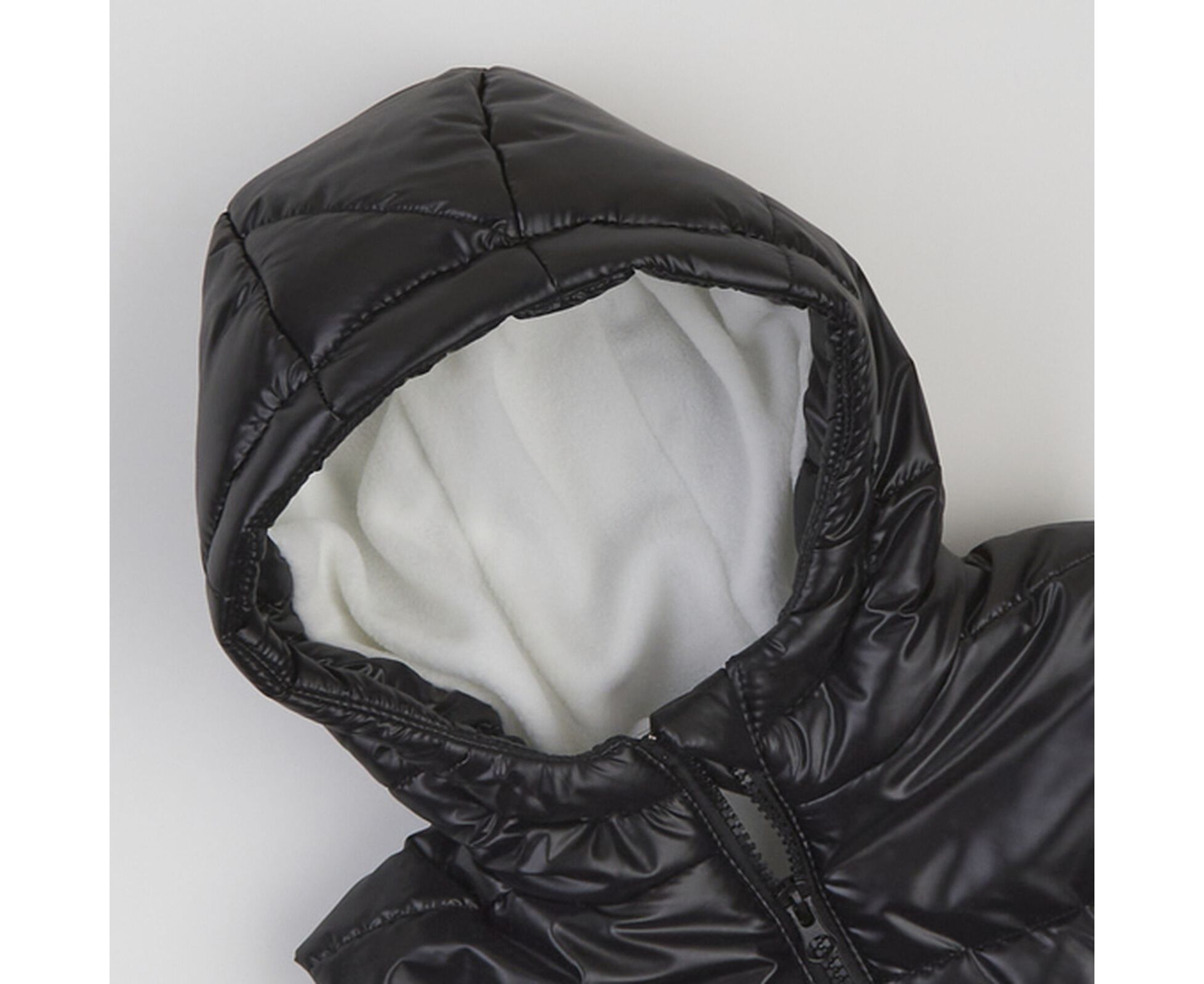 Зручний в прохолодну погоду жилет з каптуром та високою стійкою, з простьобаної плащовки лаке, на дуже приємному на дотик м'якенькому флісі ,з утеплювачем синтепух щільністю 150г/кв.м., який добре зберігає форму та об'єм, навіть після багаторазового стиснення. Застібка блискавка центральна , бокові кишені-"листочки" з підзором з флісу, що забезпечує рукам і тепло, і приємний дотик. Присборка на вузеньку резинку по низу спинки запобігає продуванню.
