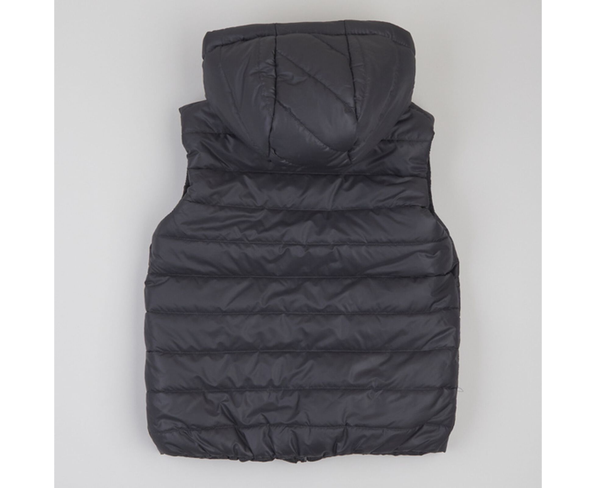 Зручний в прохолодну погоду жилет з каптуром та високою стійкою, з простьобаної плащовки лаке, на дуже приємному на дотик м'якенькому флісі ,з утеплювачем синтепух щільністю 150г/кв.м., який добре зберігає форму та об'єм, навіть після багаторазового стиснення. Застібка блискавка центральна , бокові кишені-"листочки" з підзором з флісу, що забезпечує рукам і тепло, і приємний дотик. Присборка на вузеньку резинку по низу спинки запобігає продуванню.