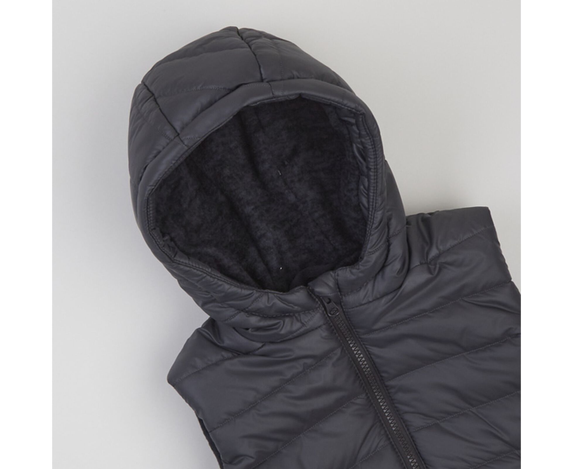 Зручний в прохолодну погоду жилет з каптуром та високою стійкою, з простьобаної плащовки лаке, на дуже приємному на дотик м'якенькому флісі ,з утеплювачем синтепух щільністю 150г/кв.м., який добре зберігає форму та об'єм, навіть після багаторазового стиснення. Застібка блискавка центральна , бокові кишені-"листочки" з підзором з флісу, що забезпечує рукам і тепло, і приємний дотик. Присборка на вузеньку резинку по низу спинки запобігає продуванню.