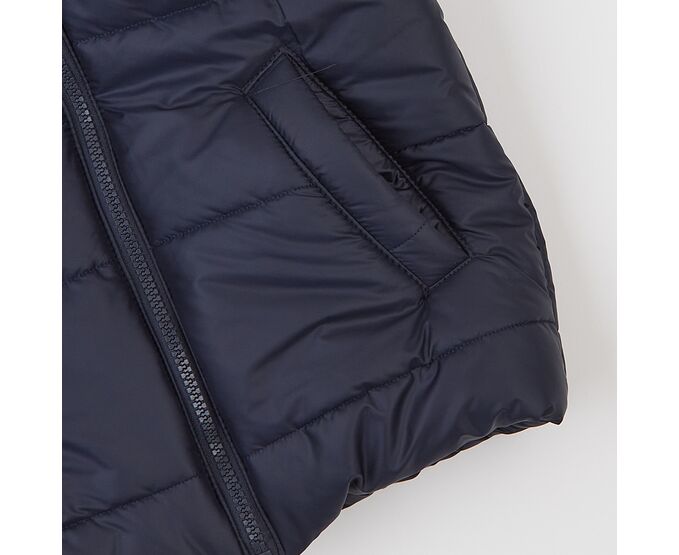 Зручний в прохолодну погоду жилет з каптуром та високою стійкою, з простьобаної плащовки лаке, на дуже приємному на дотик м'якенькому флісі ,з утеплювачем синтепух щільністю 150г/кв.м., який добре зберігає форму та об'єм, навіть після багаторазового стиснення. Застібка блискавка центральна , бокові кишені-"листочки" з підзором з флісу, що забезпечує рукам і тепло, і приємний дотик. Присборка на вузеньку резинку по низу спинки запобігає продуванню.