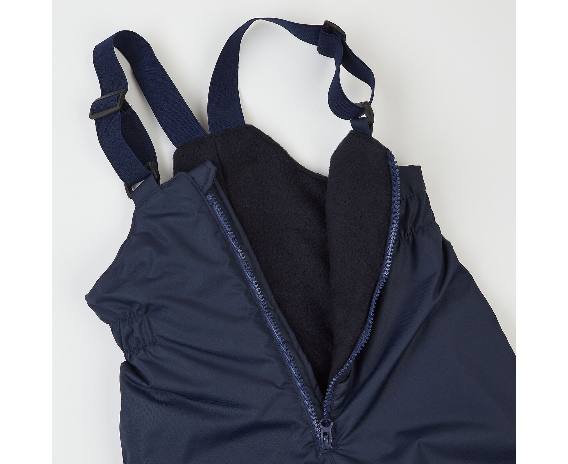 Зимовий дитячий напівкомбінезон на бретелях-підтяжках, дуже практичний та зручний. Виготовлений з абсолютно волого та вітронепроникної плащовки. Виріб на підкладці з приємного на дотик та якісного флісу, утеплений м'яким сучасним матеріалом - слімтекс (щільність 200г/кв.м.), який, не дивлячись на те,що на вигляд тоненький, має кращі теплозахисні властивості, ніж синтепон, добре зберігає тепло навіть в сильні морози та дуже зручний в експлуатаціі - завдяки невеликому об'єму не сковує рухи дитини. Застібка центральна на блискавку-трактор, зсередини прикрита вітрозахисною планкою. Завдяки еластичній талії й регульованим гумовим бретелям штани будуть точно сидіти по фігурі та трошки "рости" разом з дитиною. В бокових швах кишені з флісовою підкладкою. Для полегшення надягання на дитину виворіт нижньої частини штанин з гладкої тканини підкладки. По низу штанин внутрішній манжет, зібраний на гумку, завдяки чому кінці штанин будуть добре триматися на взутті. та не будуть задиратися під час прогулянки. Світловідбивні елементи по низкам напівкомбінезону видимі і ззаду, і зпереду, що є запорукою безпеки в темряві.